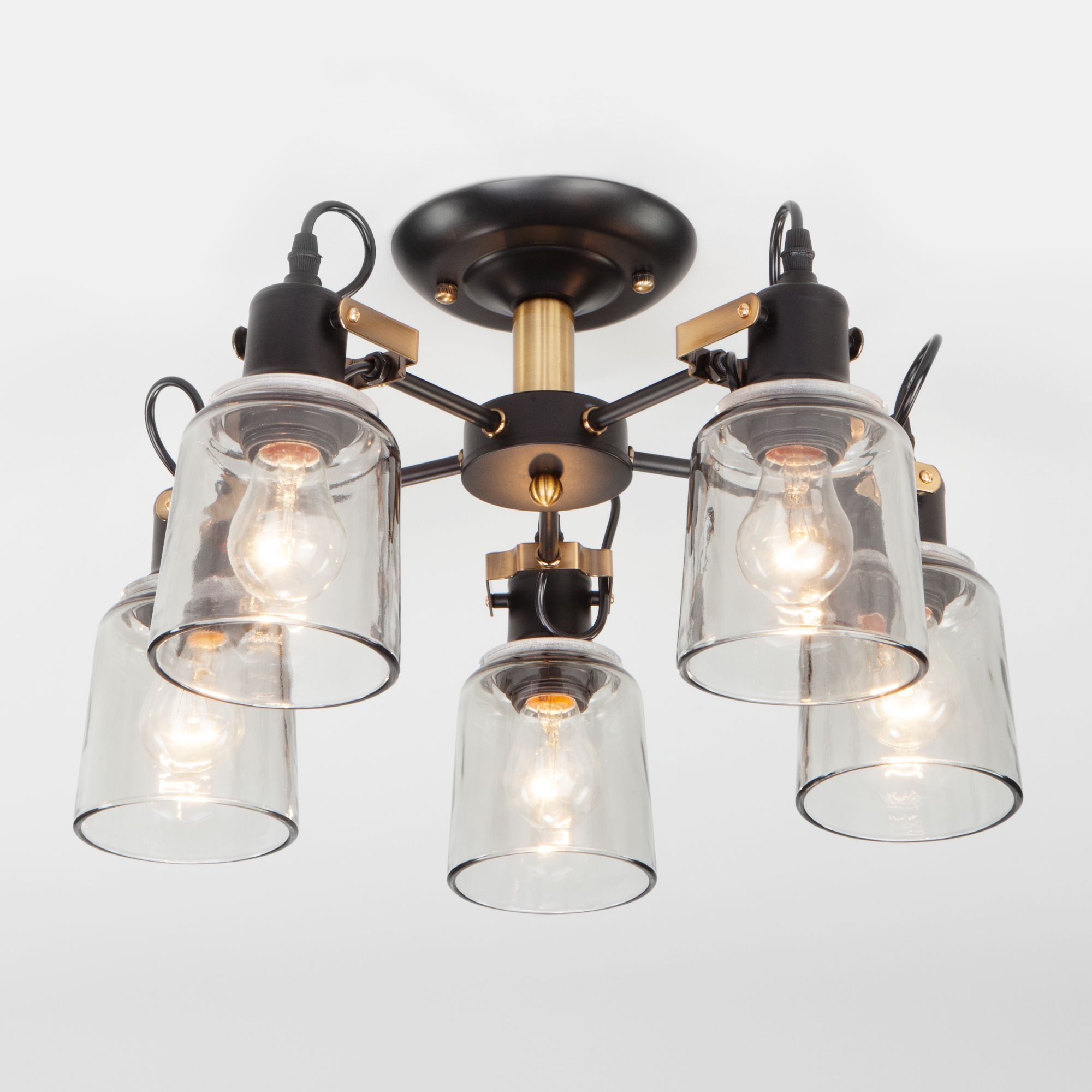 В пятирожковой люстре используются сменные лампы с цоколем E27, рассчитанные на максимальную мощность 60 Вт. Потолочный светильник оснащен стеклянными плафонами и поворотным механизмом, позволяющий направлять световой поток в нужном направлении.В производстве люстры использован высококачественный металл с надежным защитным покрытием и закаленное стекло.