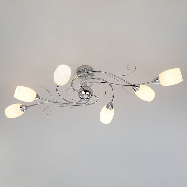 Потолочная люстра с плафонами 70036/6 хром предназначена для создания основного освещения в современных и классических интерьерах, подходит для различных типов помещений и рассчитана на площадь освещения 16 м².