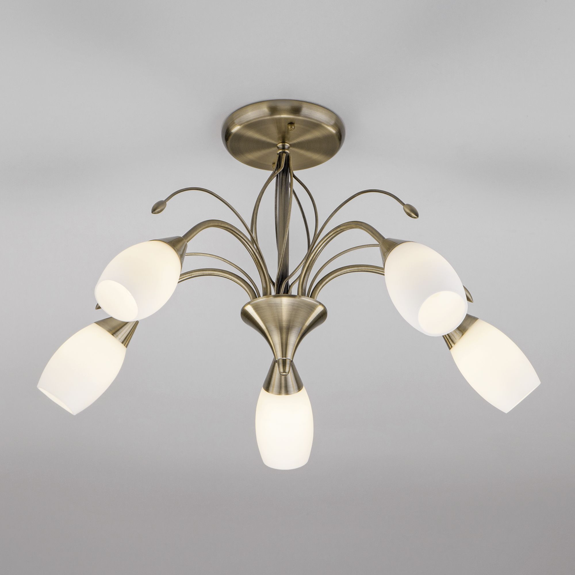 ПодробнееОрганизовать качественное освещение вам поможет современная потолочная люстра со стеклянными плафонами 30280/5 античная бронза из коллекции Ginevra. Ее изящные линии и бронзовый оттенок арматуры создадут атмосферу благородства и утонченности, а матовые плафоны в форме бутонов одарят мягким, приятным для глаз светом, создавая комфортную и расслабляющую обстановку.