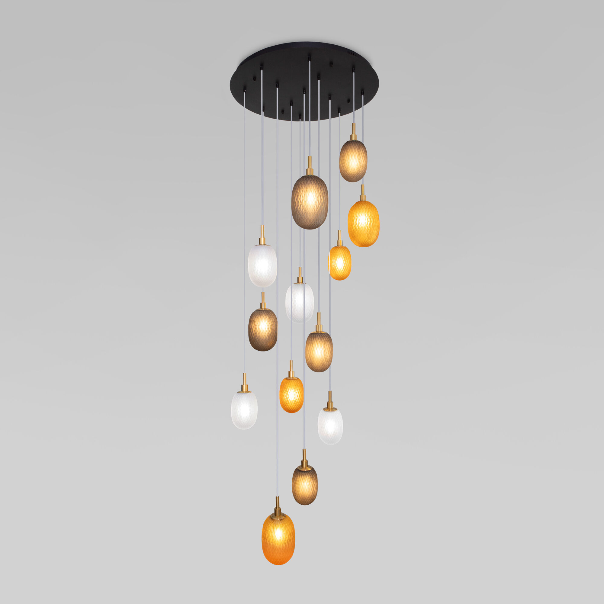 • Коллекция представлена подвесными светильниками с одной лампой и готовой композицией из 13 плафонов.