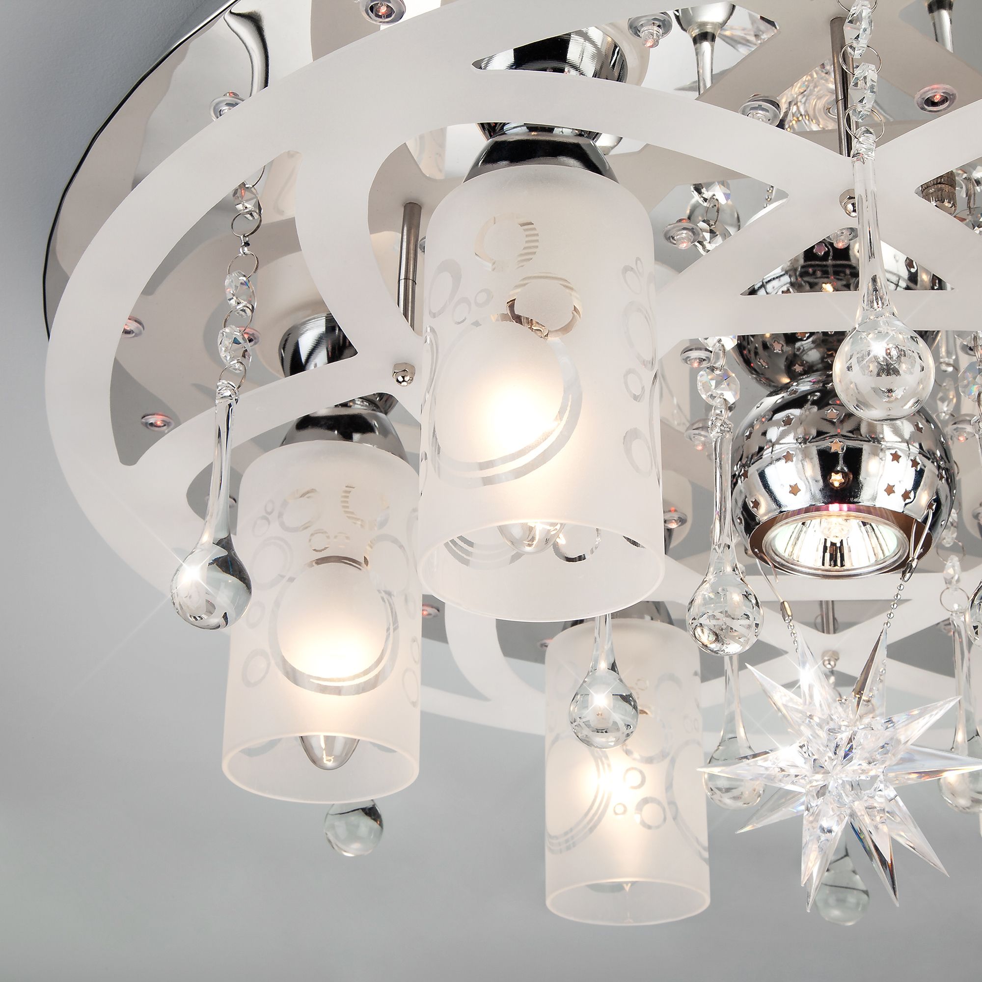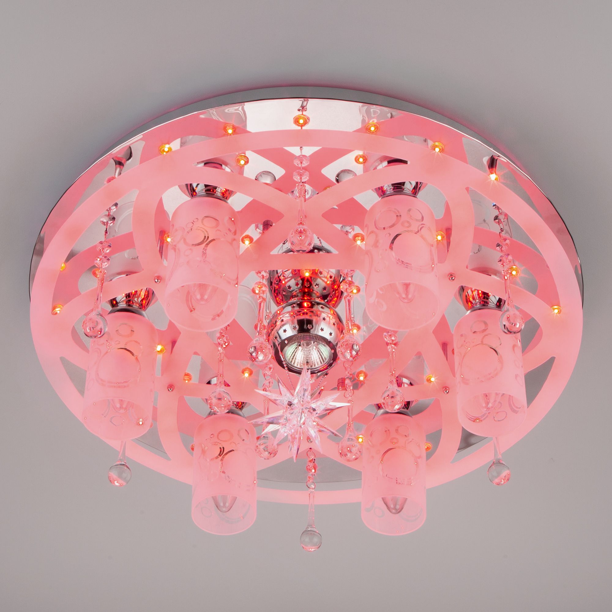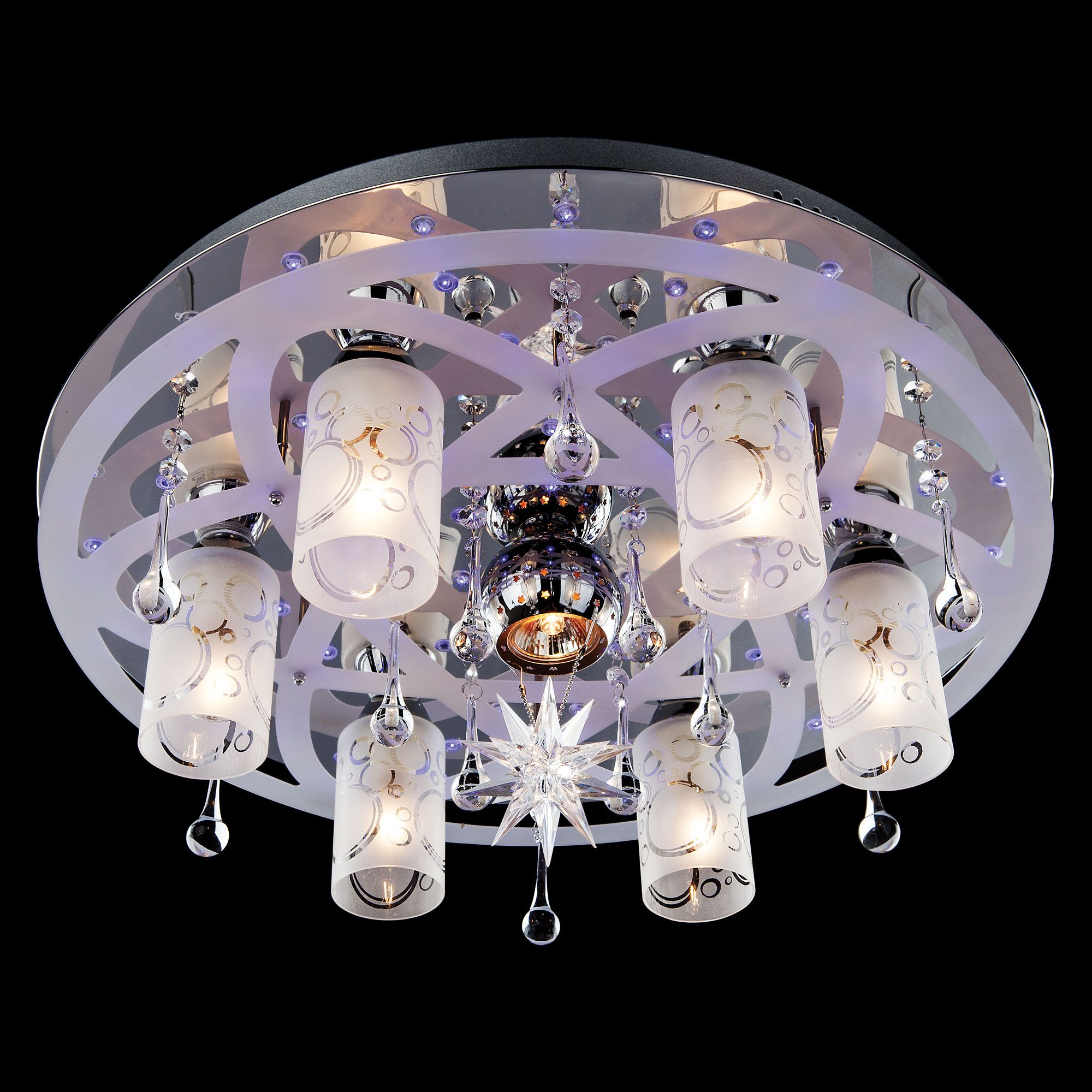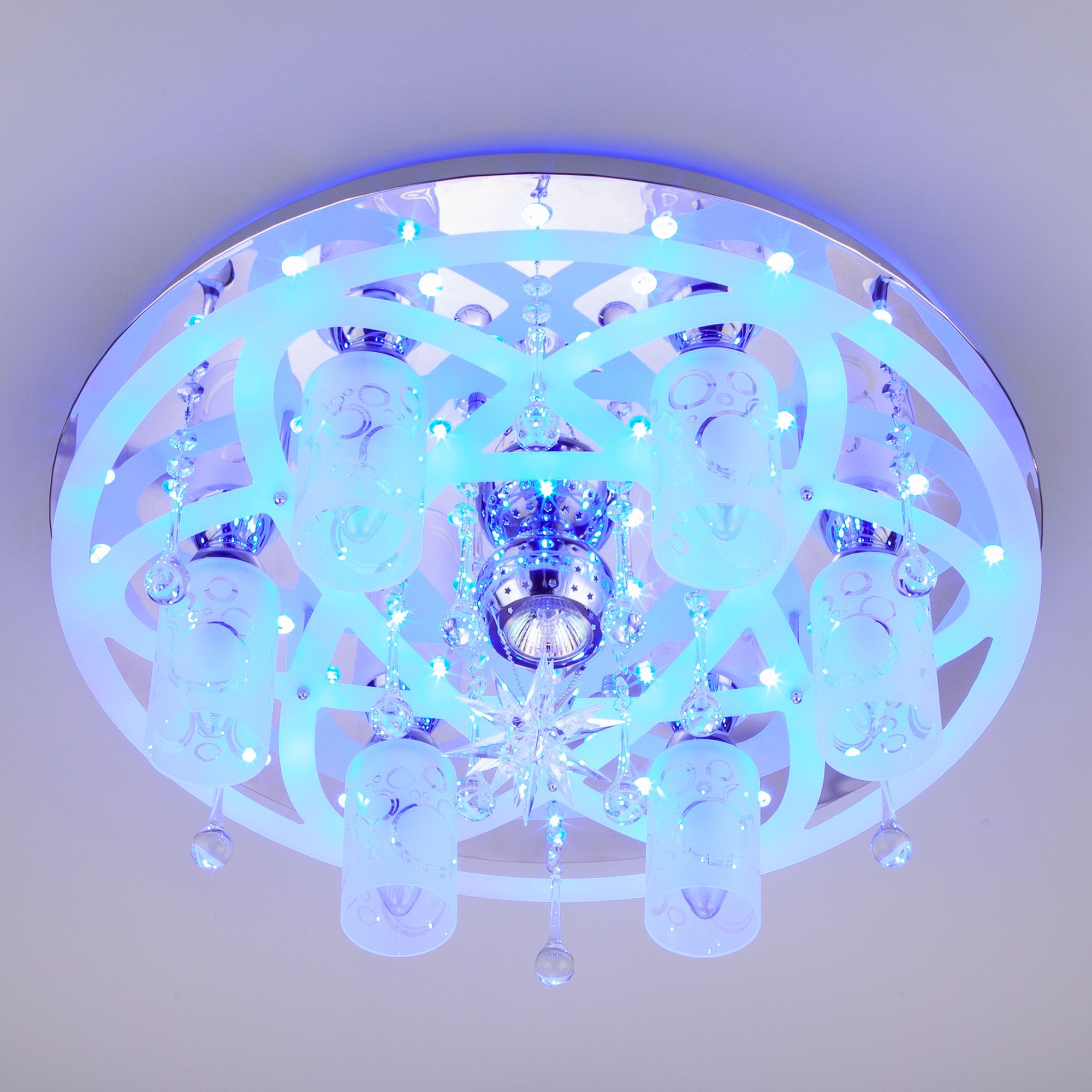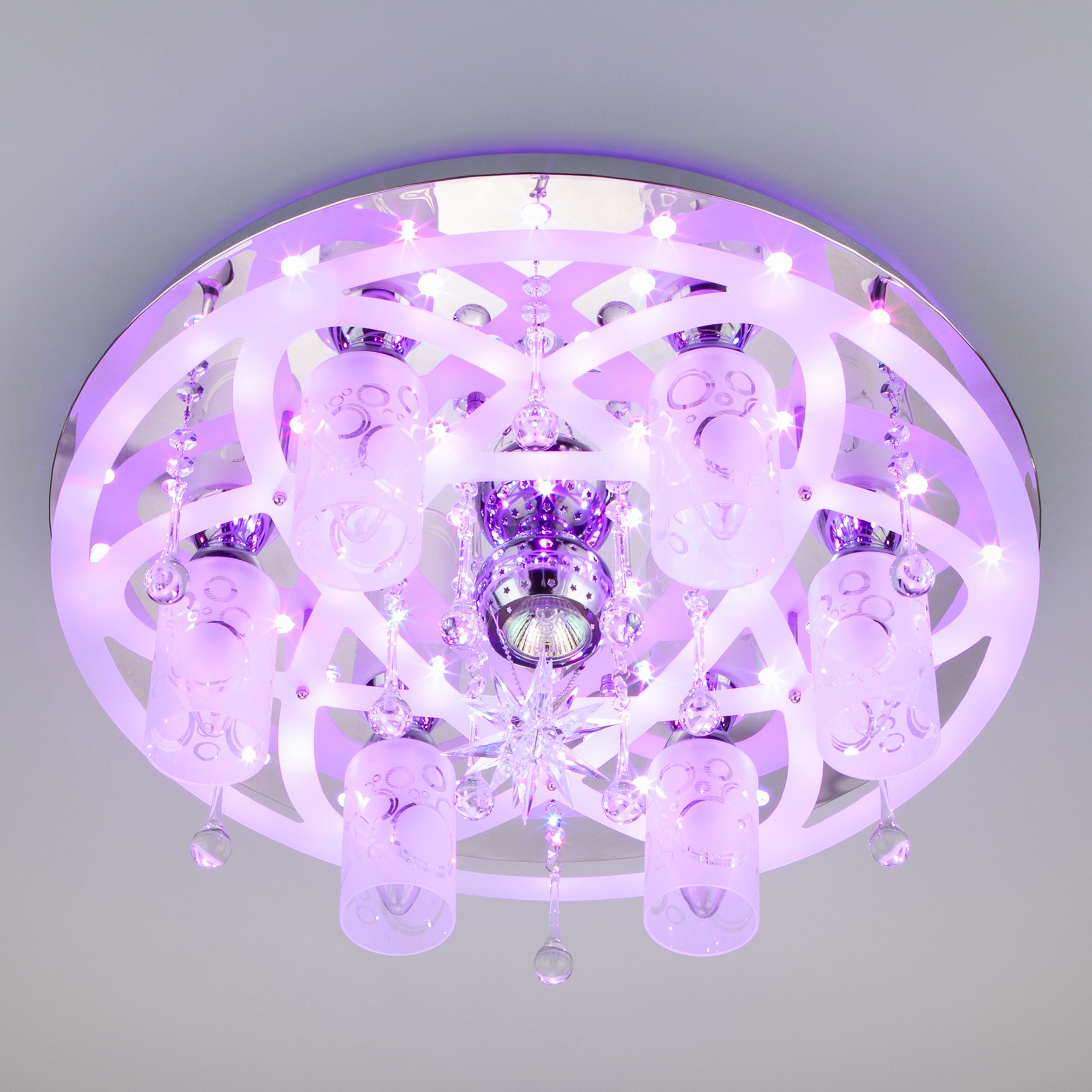 Люстра со светодиодной подсветкой и ПДУ 70202/7 хром / синий + красный + фиолетовый поможет организовать качественное освещение на площади 19 м кв. и украсить современный интерьер. Люстра оснащена сменной лампой цоколя Е14 и светодиодной подсветкой, которая сменяет свой цвет с помощью пульта.
