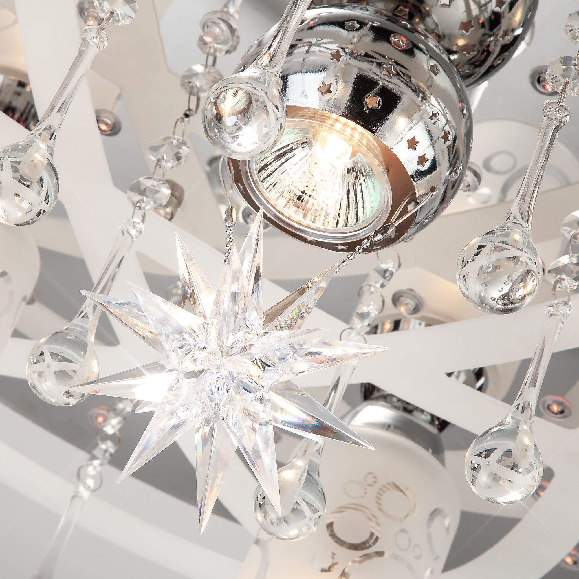 В производстве люстры были использованы высококачественные материалы: металл и пластик. Накладная потолочная люстра со светодиодной подсветкой подходит для установки на любые поверхности с помощью планки, в том числе подходит для натяжных и подвесных потолков.