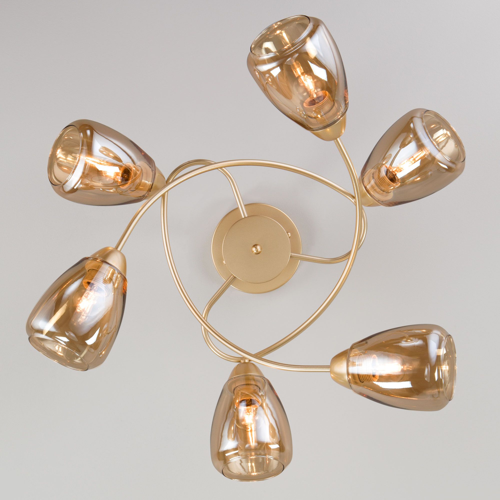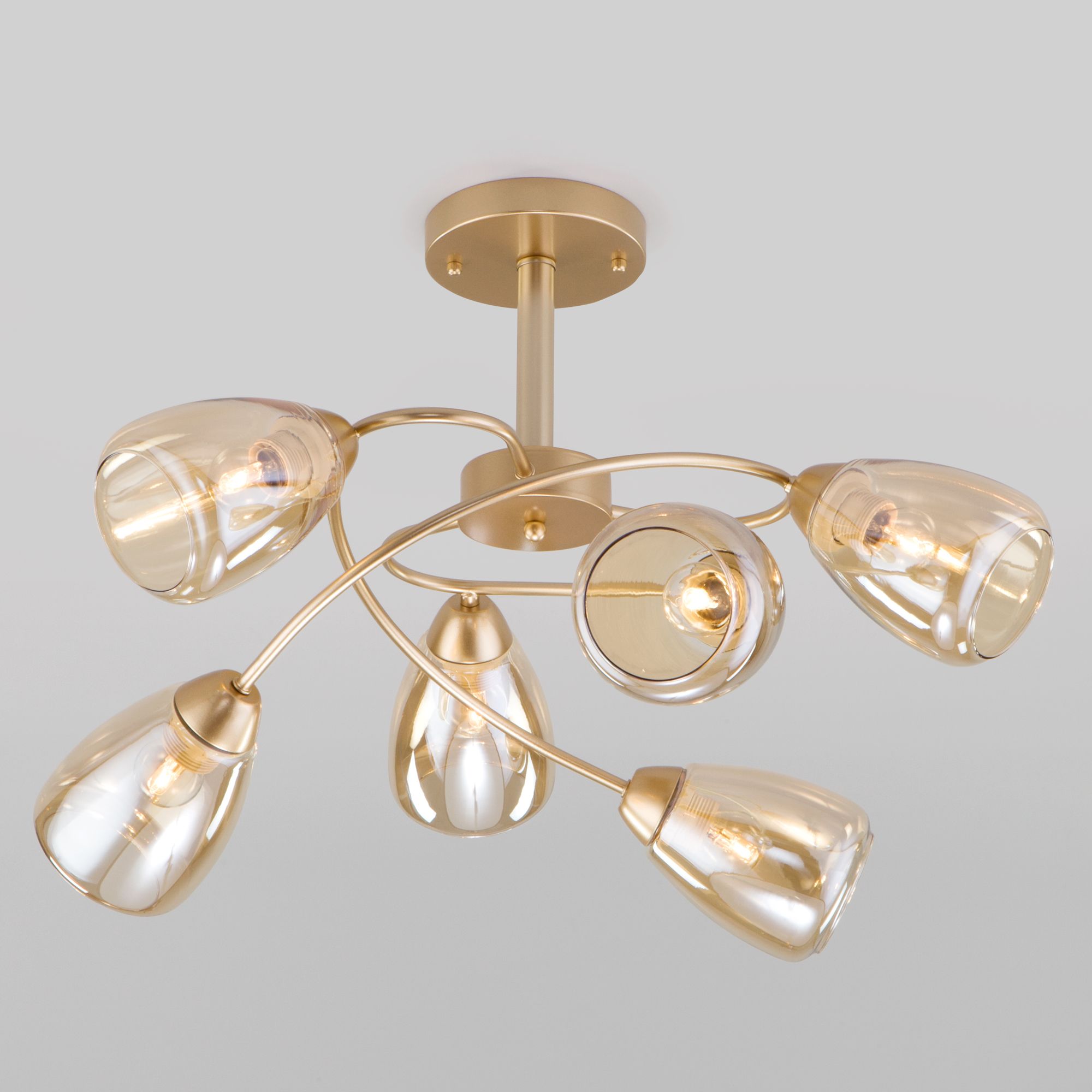 Создать качественное освещение вам поможет современная классическая шестирожковая потолочная люстра со стеклянными плафонами в цвете матовое золото. Простые минималистичные формы и сдержанные тона станут прекрасным дополнением для вашего помещения.
