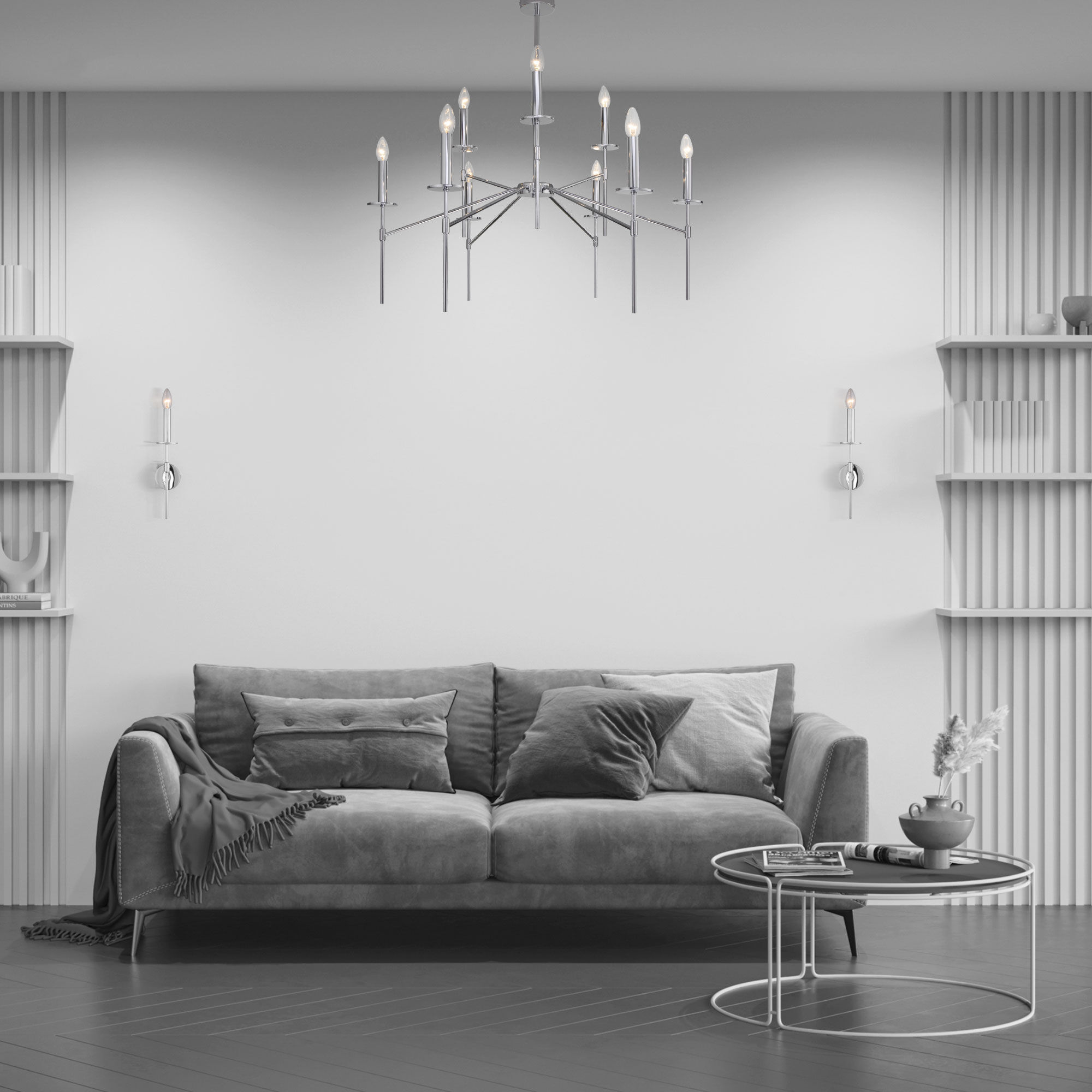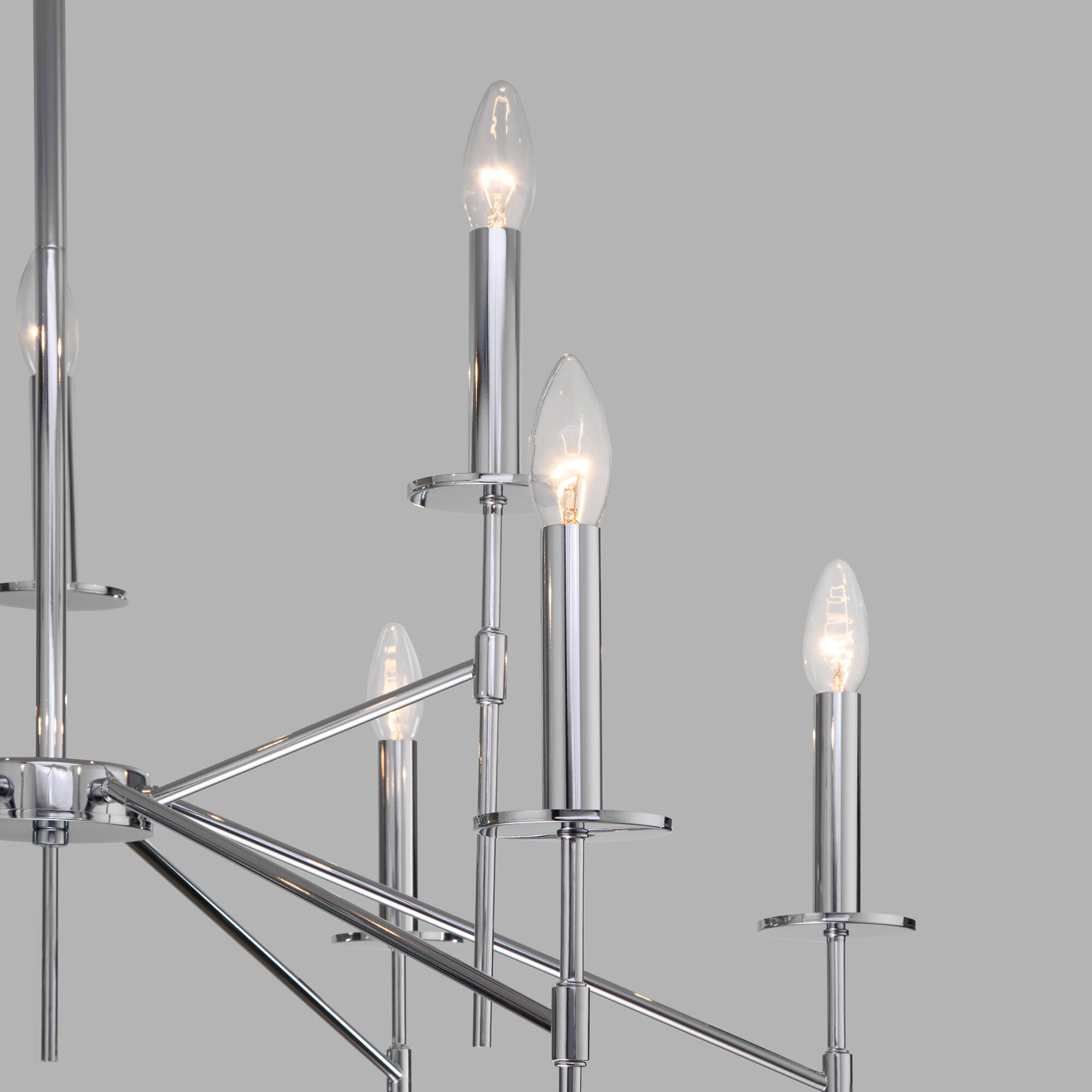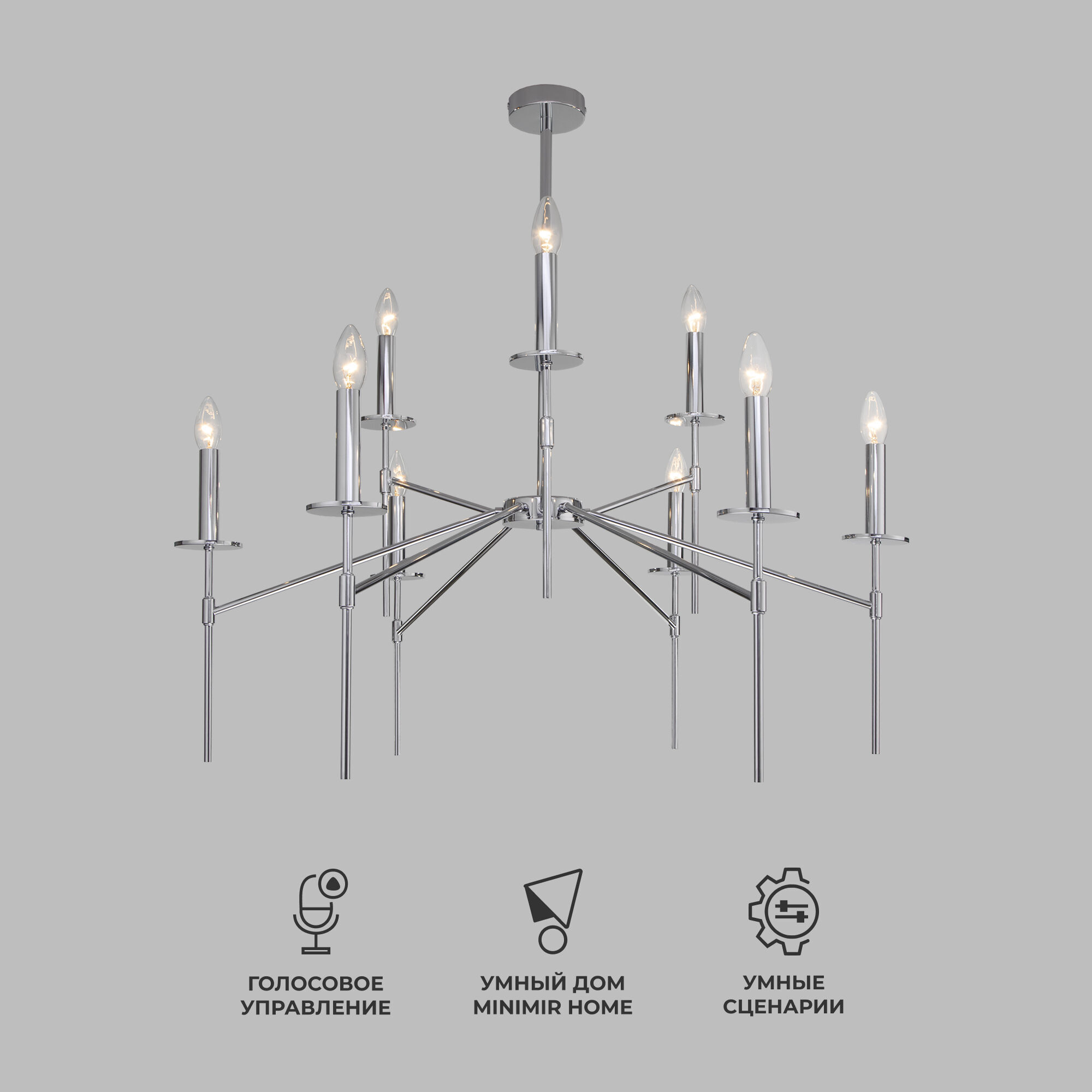 Люстра Anders в цвете хром- это острое сочетание трендовой геометрии и концепции традиционной люстры-канделябра. Девять открытых источников света без привычных для нас стеклянных плафонов подчеркивают четкость линий модели и оригинальность задумки. В светильнике используются сменные лампы с цоколем E14. Благодаря гармоничному сочетанию классических и современных дизайн-приемов потолочный светильник Anders создаст запоминающийся визуальный образ в любом интерьере гостиной, спальни или кухни.