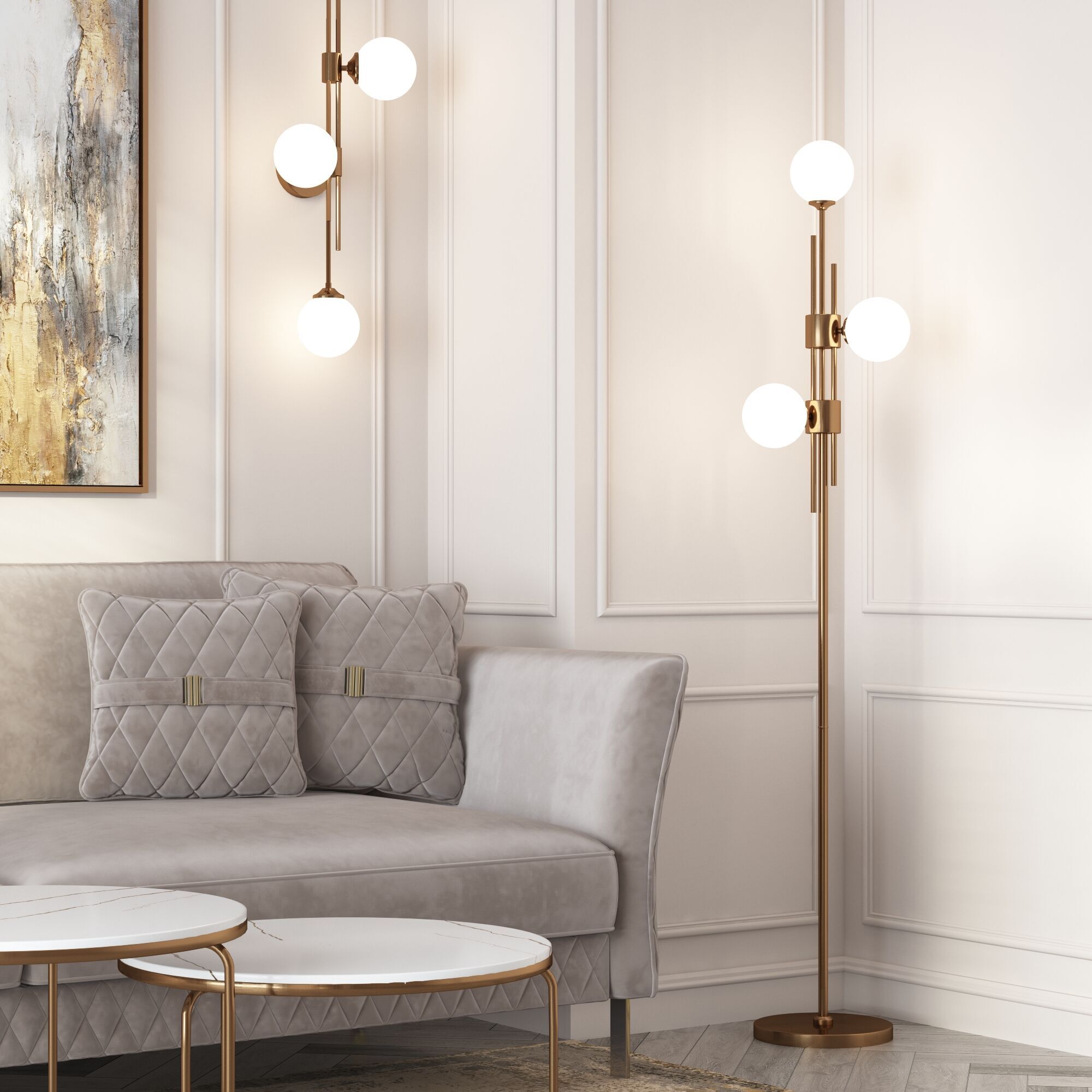 Напольный светильник со стеклянными плафонами 01383/3 латунь - это стильный элемент светового дизайна в современных и классических интерьерах. Эффектный, выразительный, современный торшер со сменными лампами G9 поможет создать качественное дополнительное освещение на площади 4 м² и станет изящным украшением вашей спальни или гостиной.