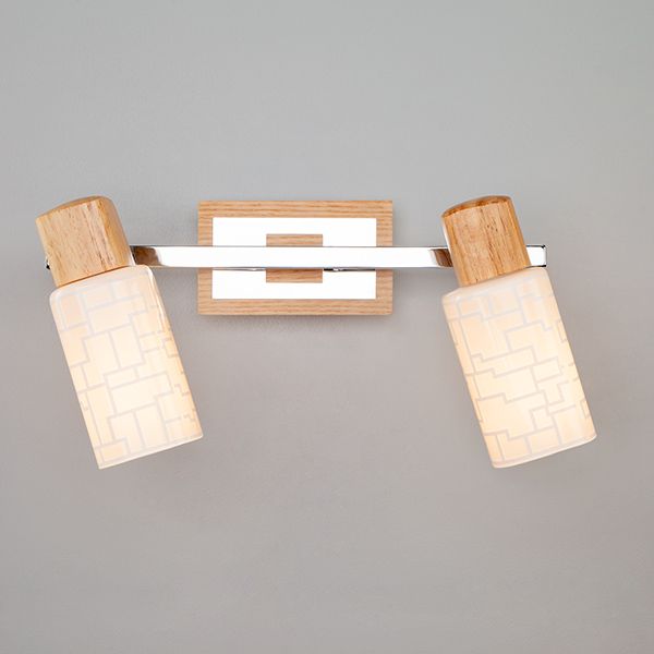 Светильник с поворотными плафонами 20029/2 хром/светлое дерево создаст качественное дополнительное освещение и станет эффектным дополнением к основному источнику света. Благодаря декоративному стеклянному плафону бра создает мягкое равномерное свечение. В качестве источника света используются сменные лампы типа "Свеча" или "Шар" с цоколем E14.