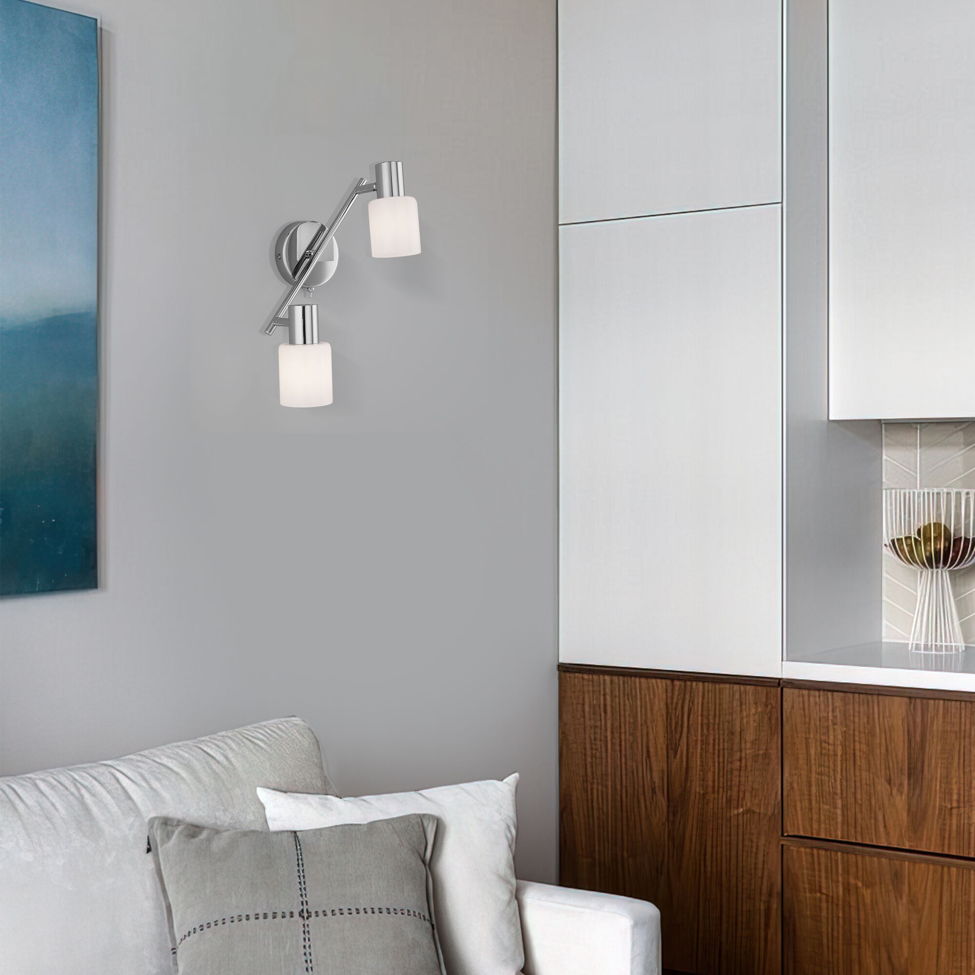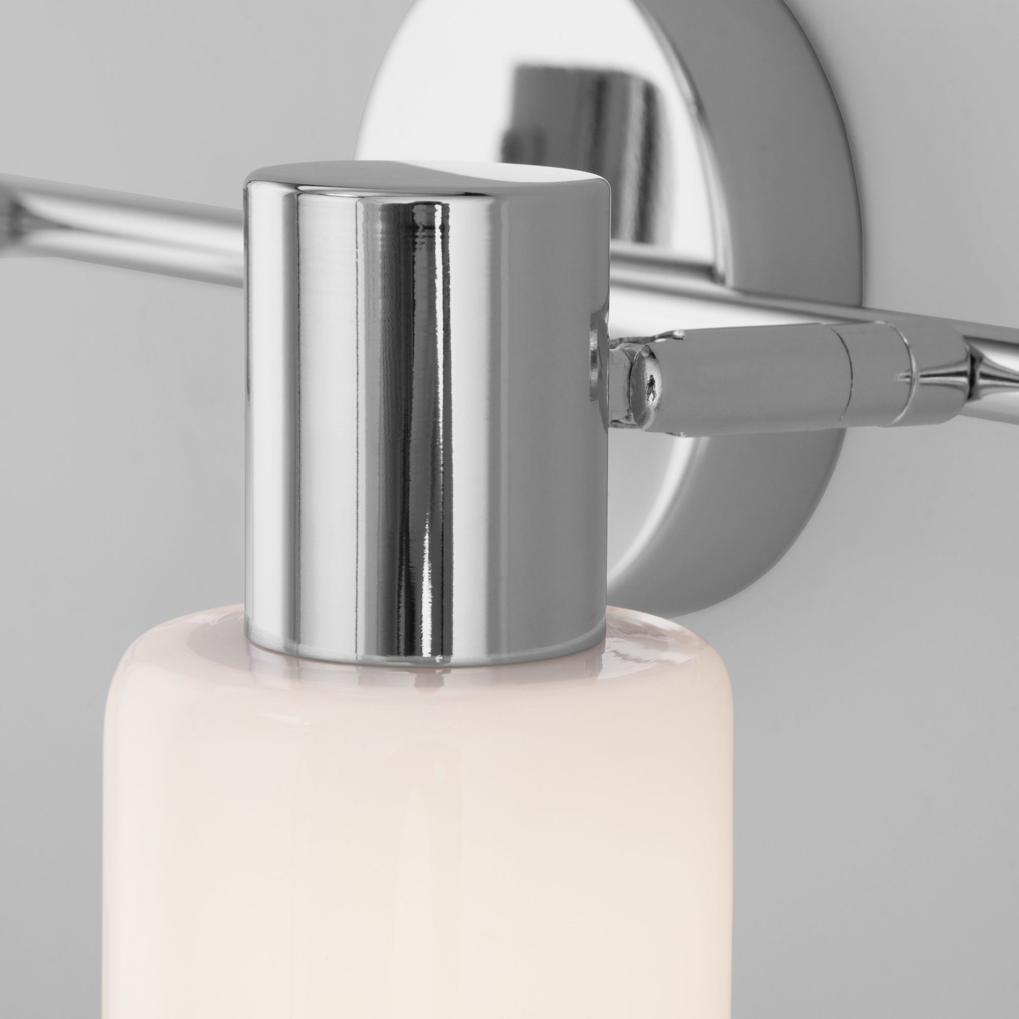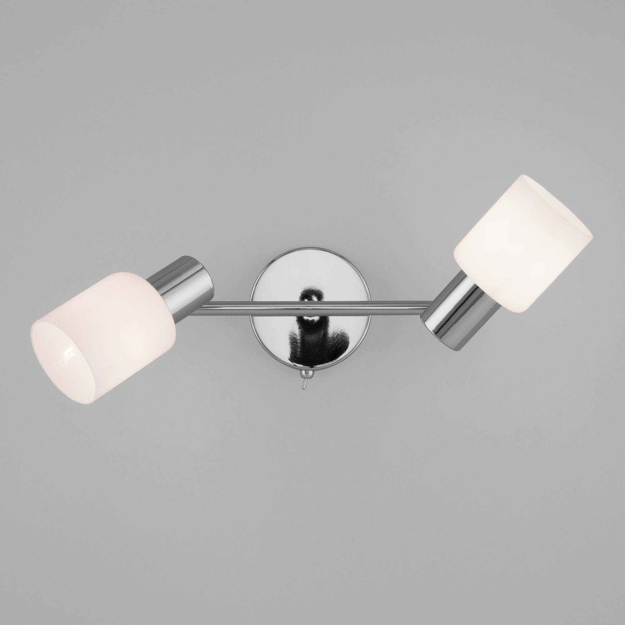 Настенный светильник с поворотными плафонами 20089/2 хром создаст качественное дополнительное освещение и станет эффектным дополнением к основному источнику света. Благодаря белому стеклянному плафону, бра создает мягкое равномерное свечение, подходящее для комфортного чтения книг в вечернее время. В качестве источника света используются сменные лампы типа "Свеча" или "Шар" с цоколем Е27. Патрон рассчитан на максимальную мощность ламп накаливания 40 Вт.