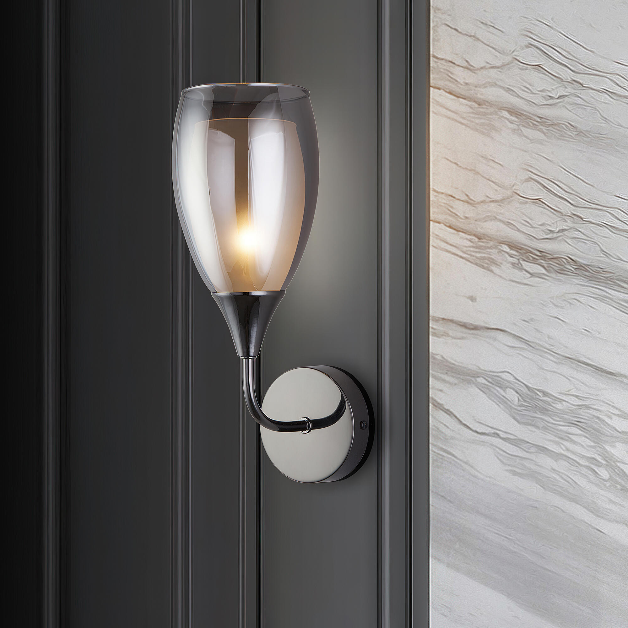 Настенный светильник в современном стиле 50285/1 черный жемчуг создаст качественное дополнительное освещение и станет эффектным дополнением к основному источнику света. Благодаря стеклянному плафону бра создает мягкое рассеянное свечение, подходящее для комфортного чтения книг в вечернее время. В качестве источника света используются сменные лампы типа "Свеча" или "Шар" с цоколем E14.