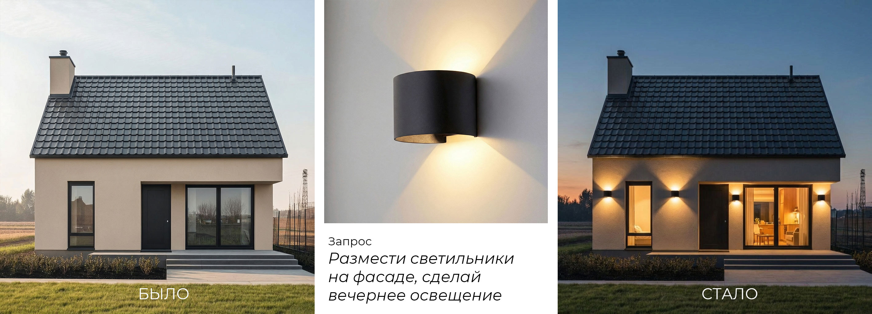 Больше не нужно тратить время и бюджет на предварительные визуализации. Примерочная позволяет за считанные минуты создать концепцию освещения для квартиры, дома, офиса или фасада здания.