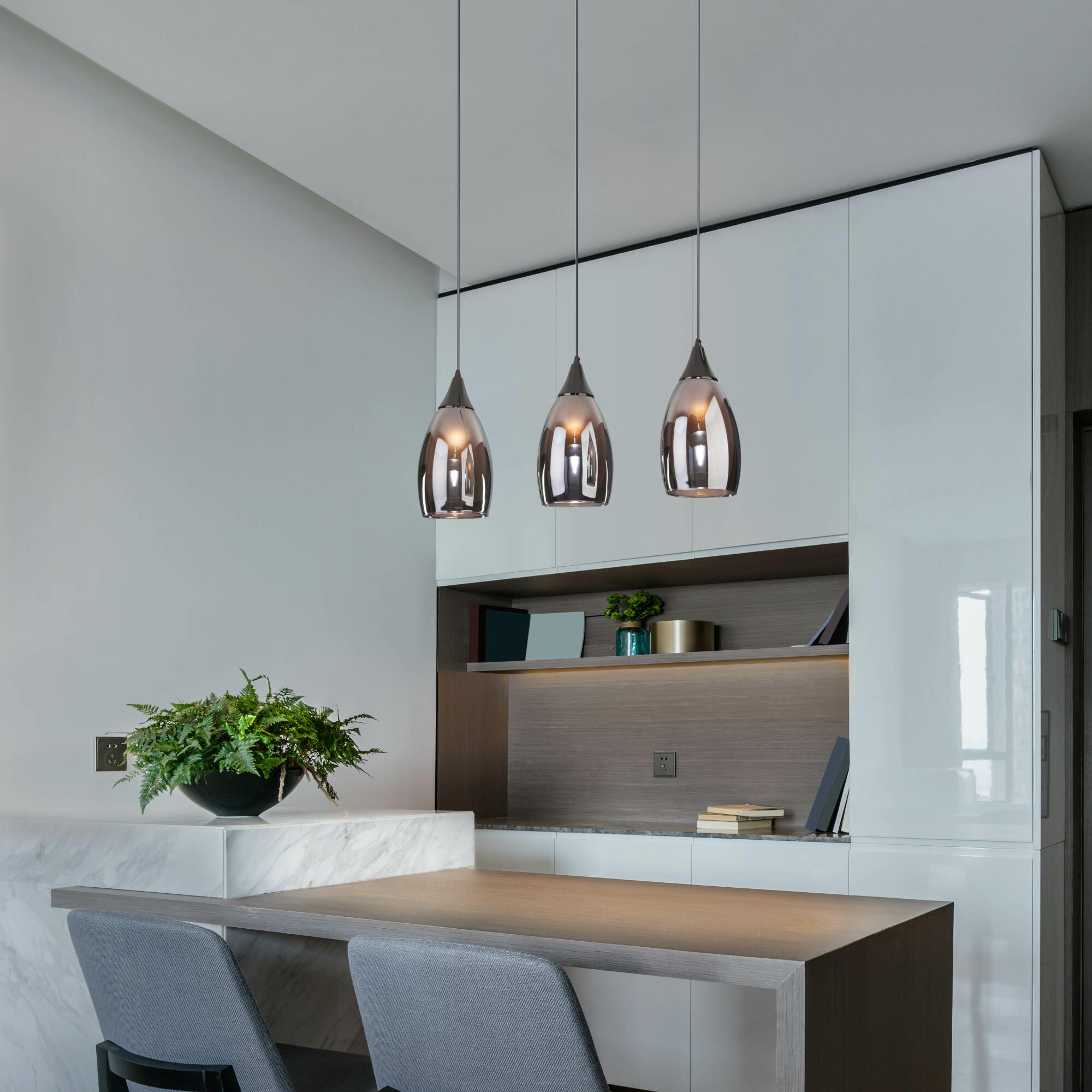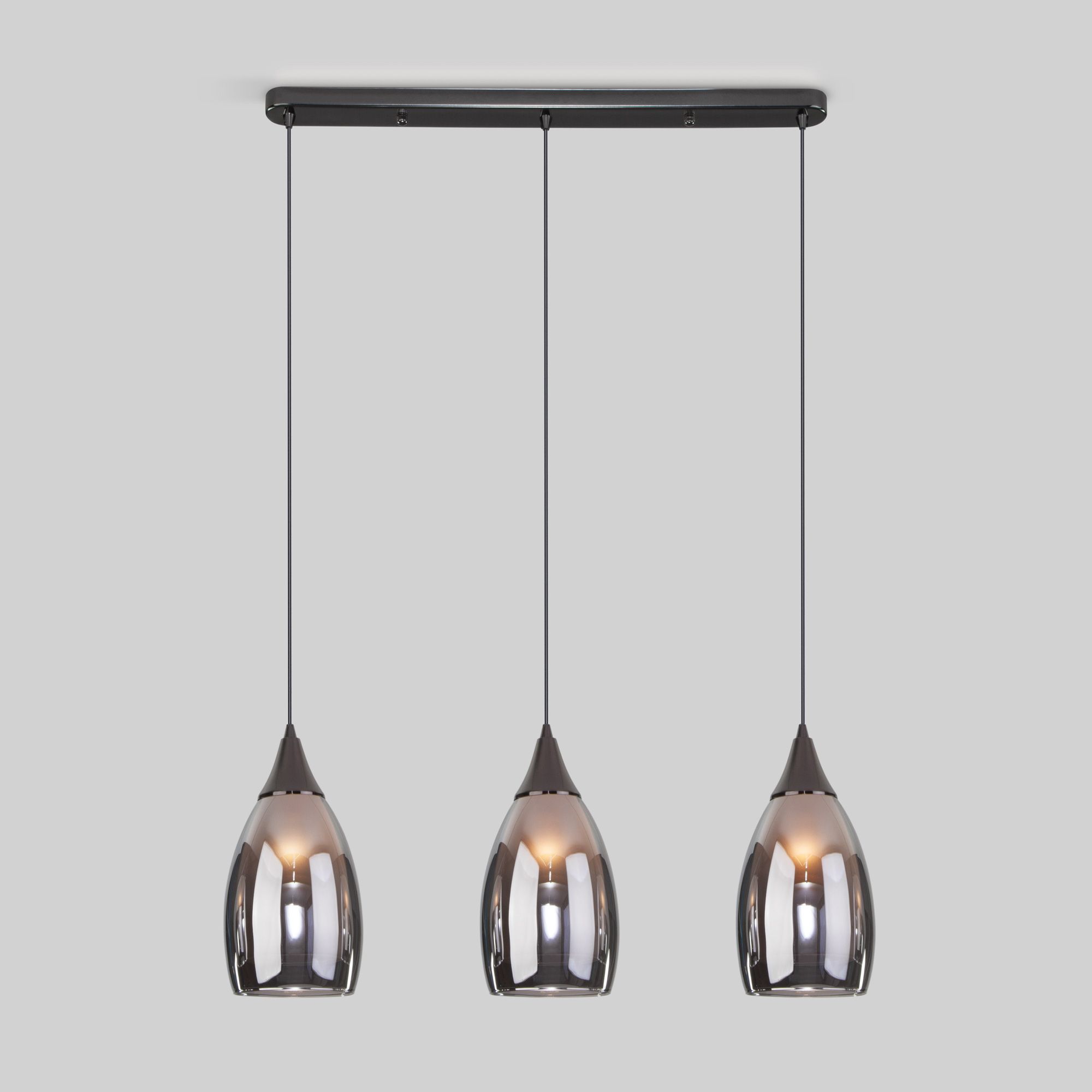 Подвесной светильник со стеклянными плафонами 50285/3 в цвете черный жемчуг создаст качественное акцентное освещение квартиры, кафе или магазина. Источником света является сменная лампа с максимальной мощностью 15 Вт.