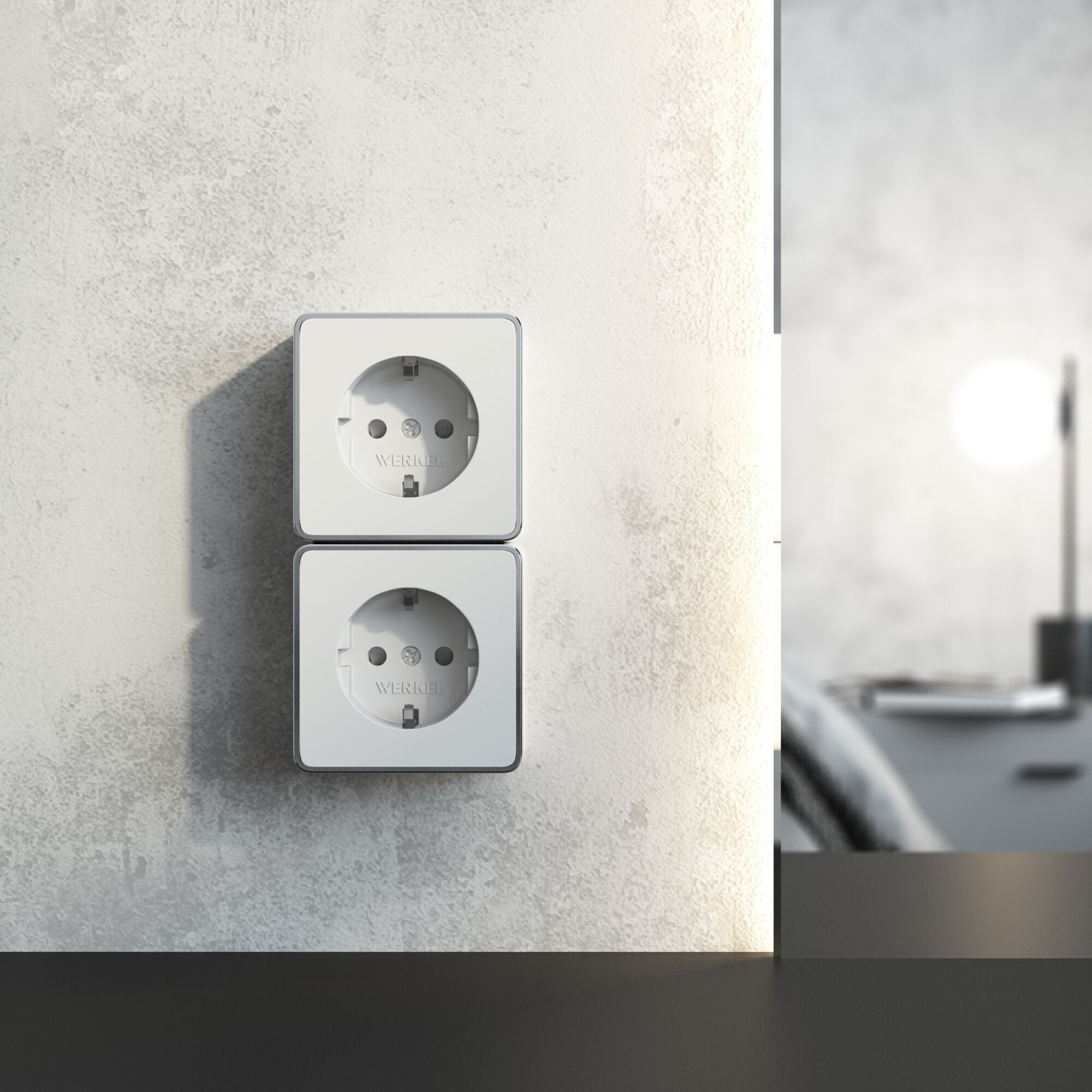 Накладной механизм не требуют дополнительных работ по монтажу отверстий и его можно устанавливать на любые поверхности. Матовый эффект придает поверхности легкую шероховатость, а декоративная хромированная вставка подчеркивает строгую форму и добавляет розетке оригинальности.
