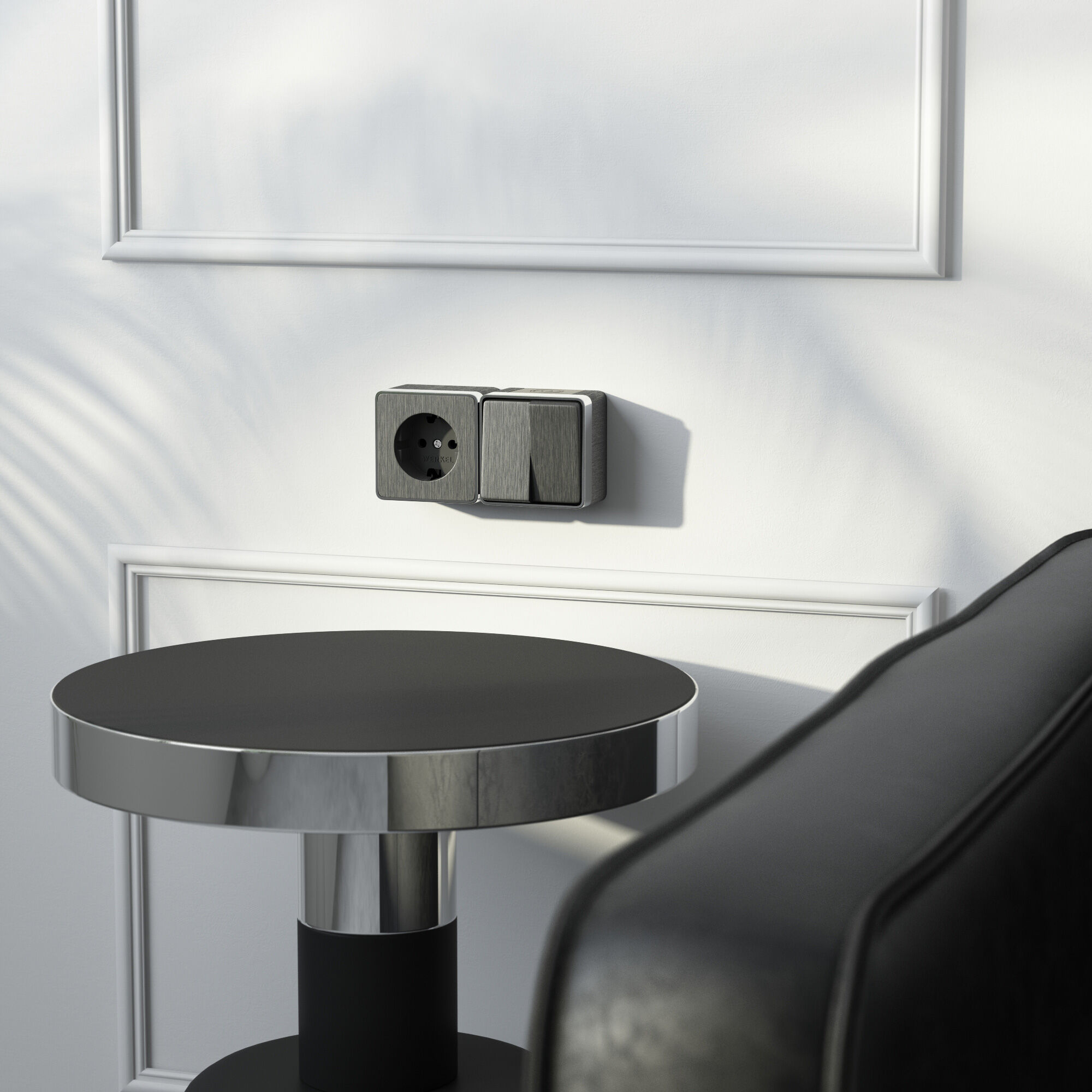 Накладной механизм не требуют дополнительных работ по монтажу отверстий и его можно устанавливать на любые поверхности. Матовый эффект придает поверхности легкую шероховатость, а декоративная хромированная вставка подчеркивает строгую форму и добавляет розетке оригинальности.