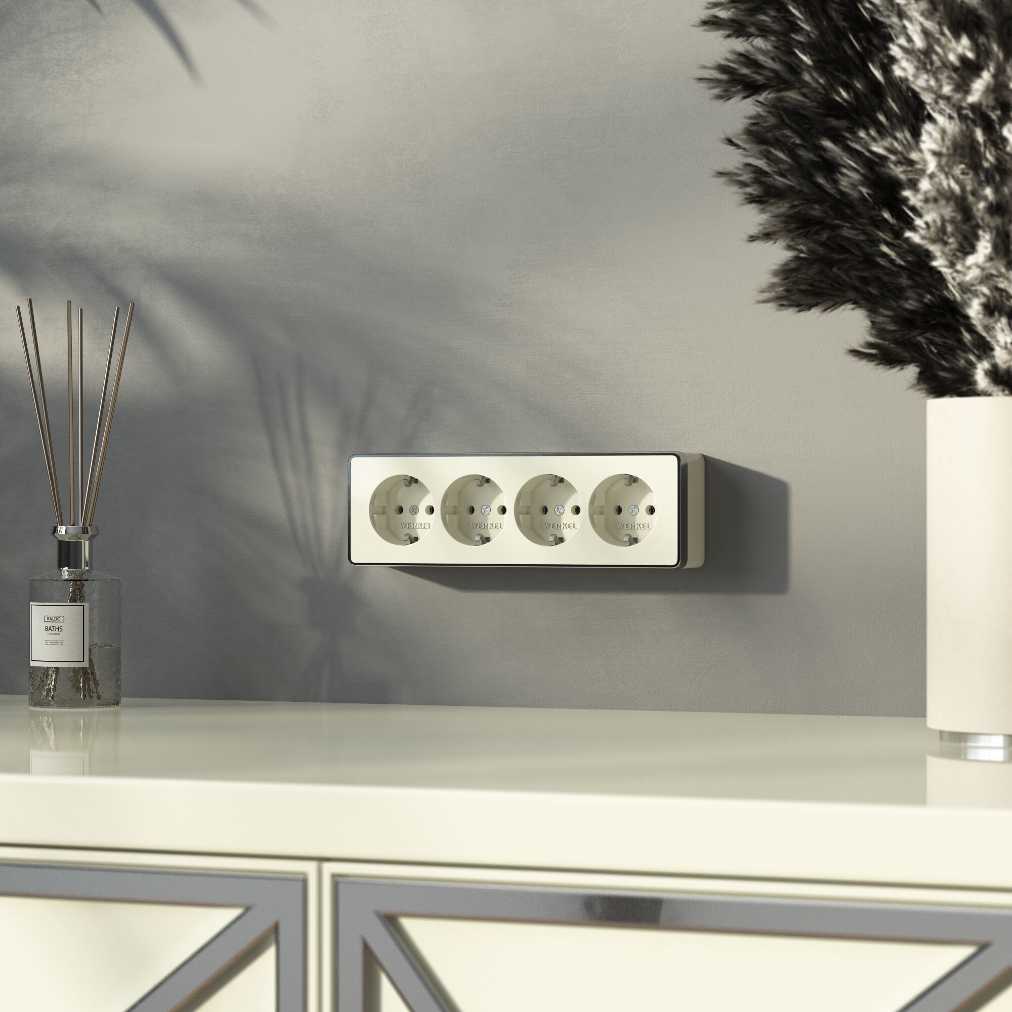 Розетка четверная с заземлением и шторками Gallant слоновая кость