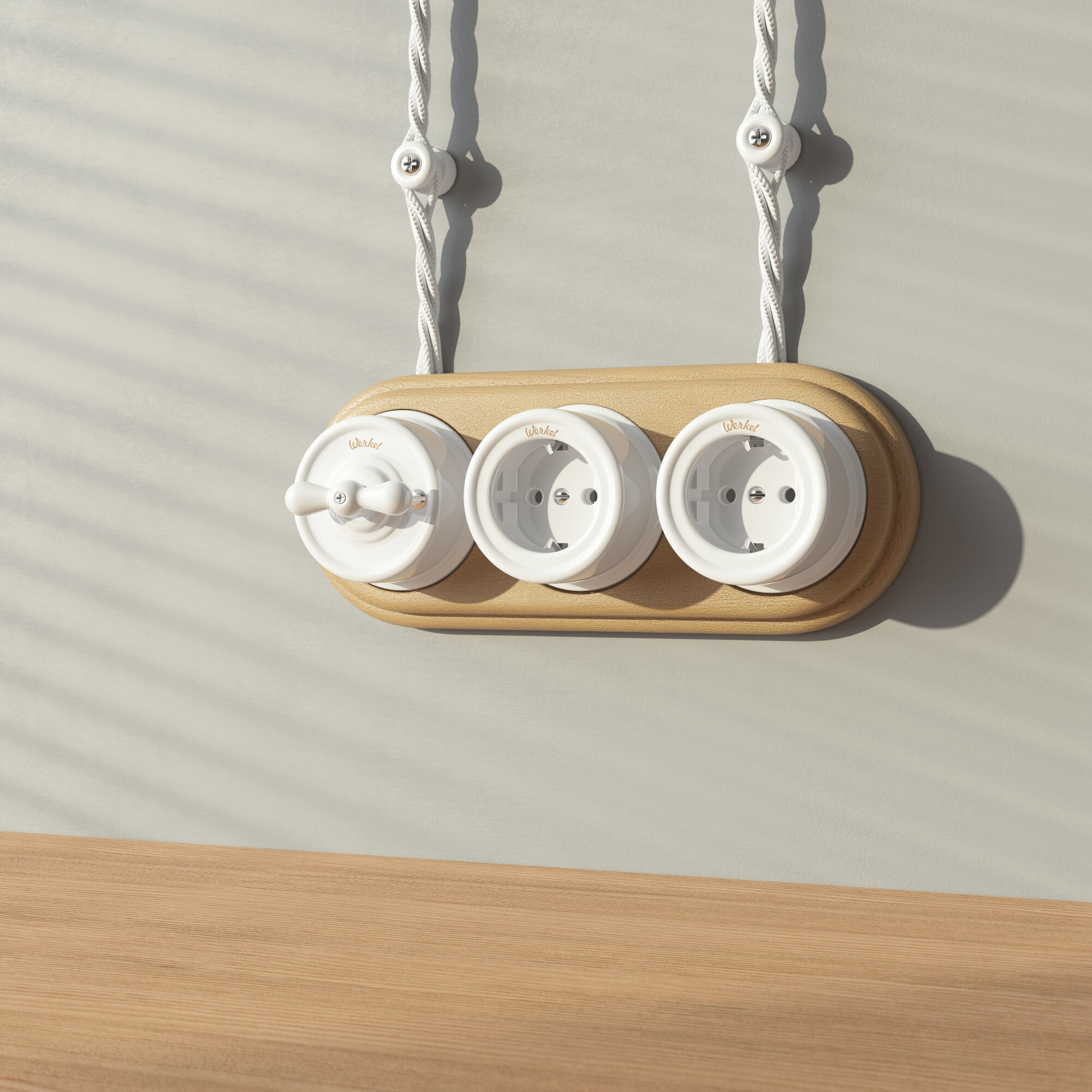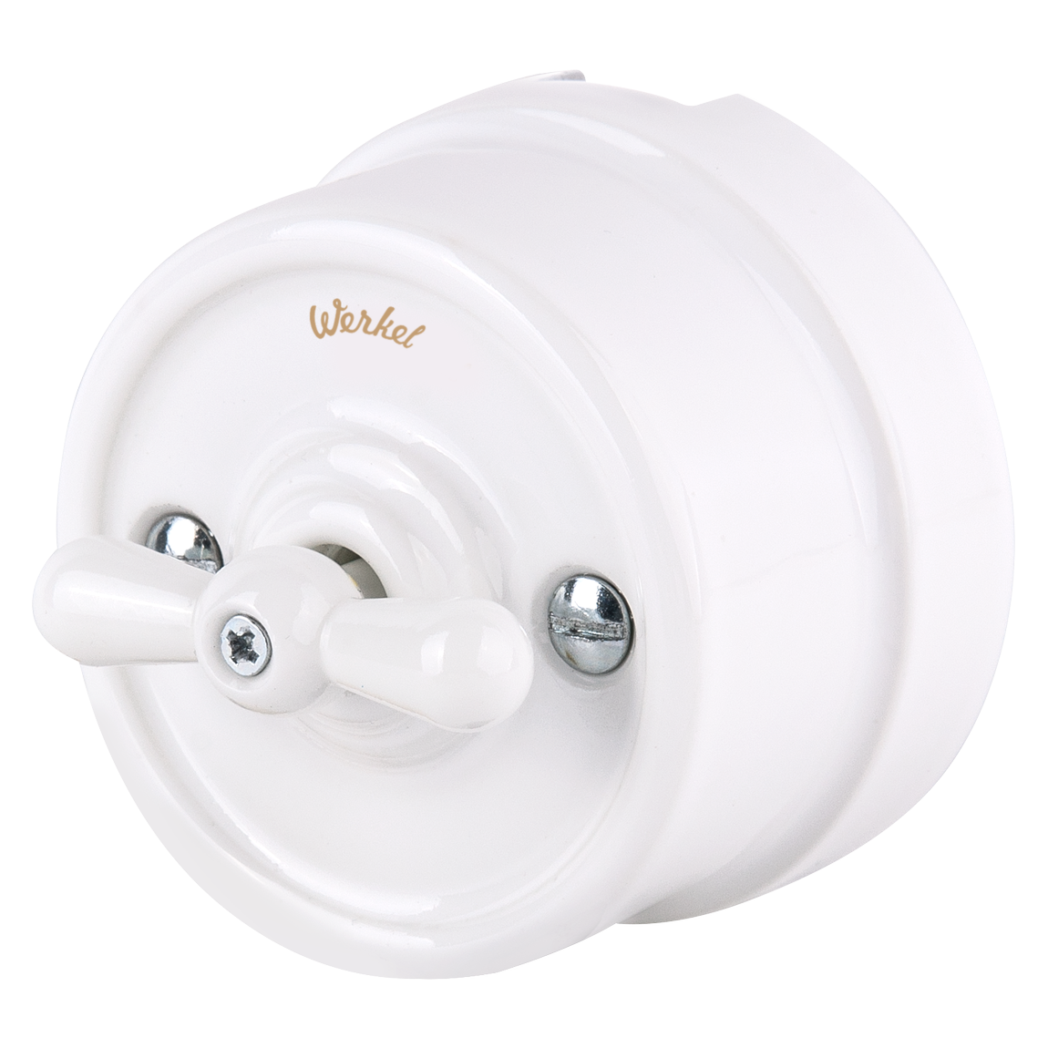 Керамический корпус обладает высокой механической прочностью, термостойкостью и диэлектрическими свойствами. Выключатель совместим со всеми ретро рамками из коллекций Werkel, характеризуется удобством использования и имеет эстетический внешний вид.