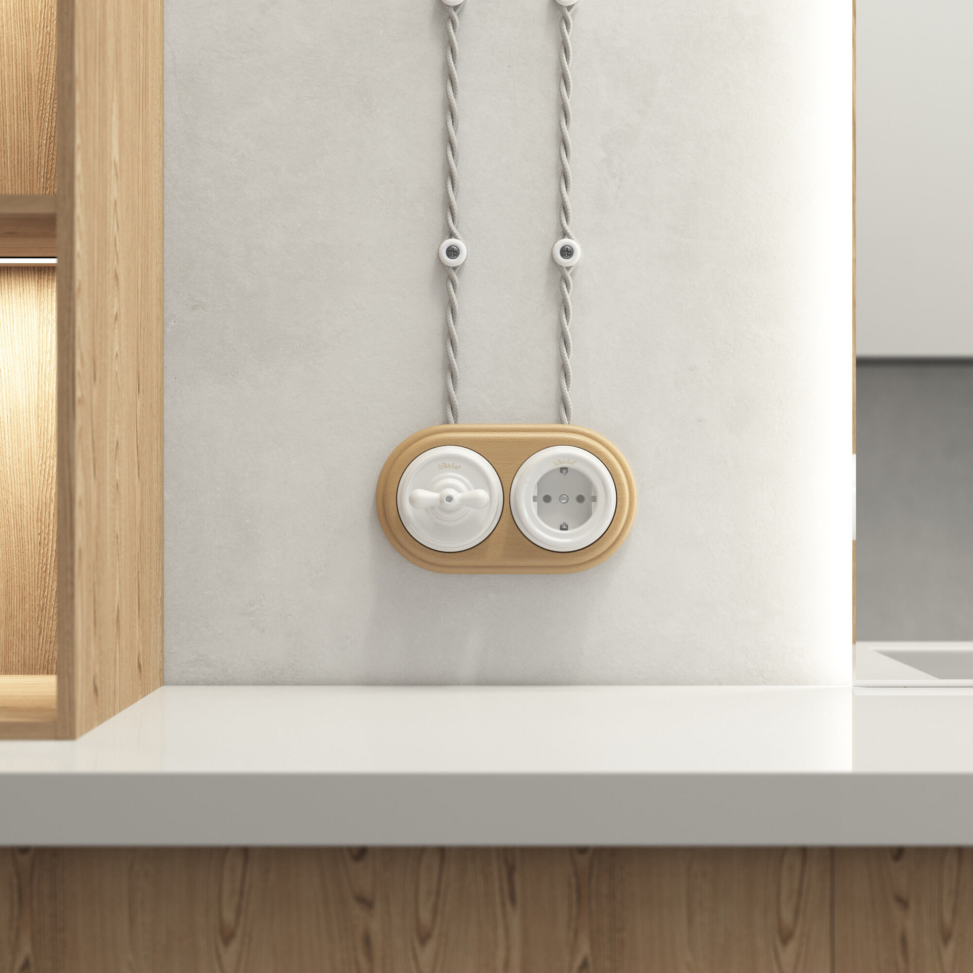 Керамический корпус обладает высокой механической прочностью, термостойкостью и диэлектрическими свойствами. Выключатель совместим со всеми ретро рамками из коллекций Werkel, характеризуется удобством использования и имеет эстетический внешний вид.