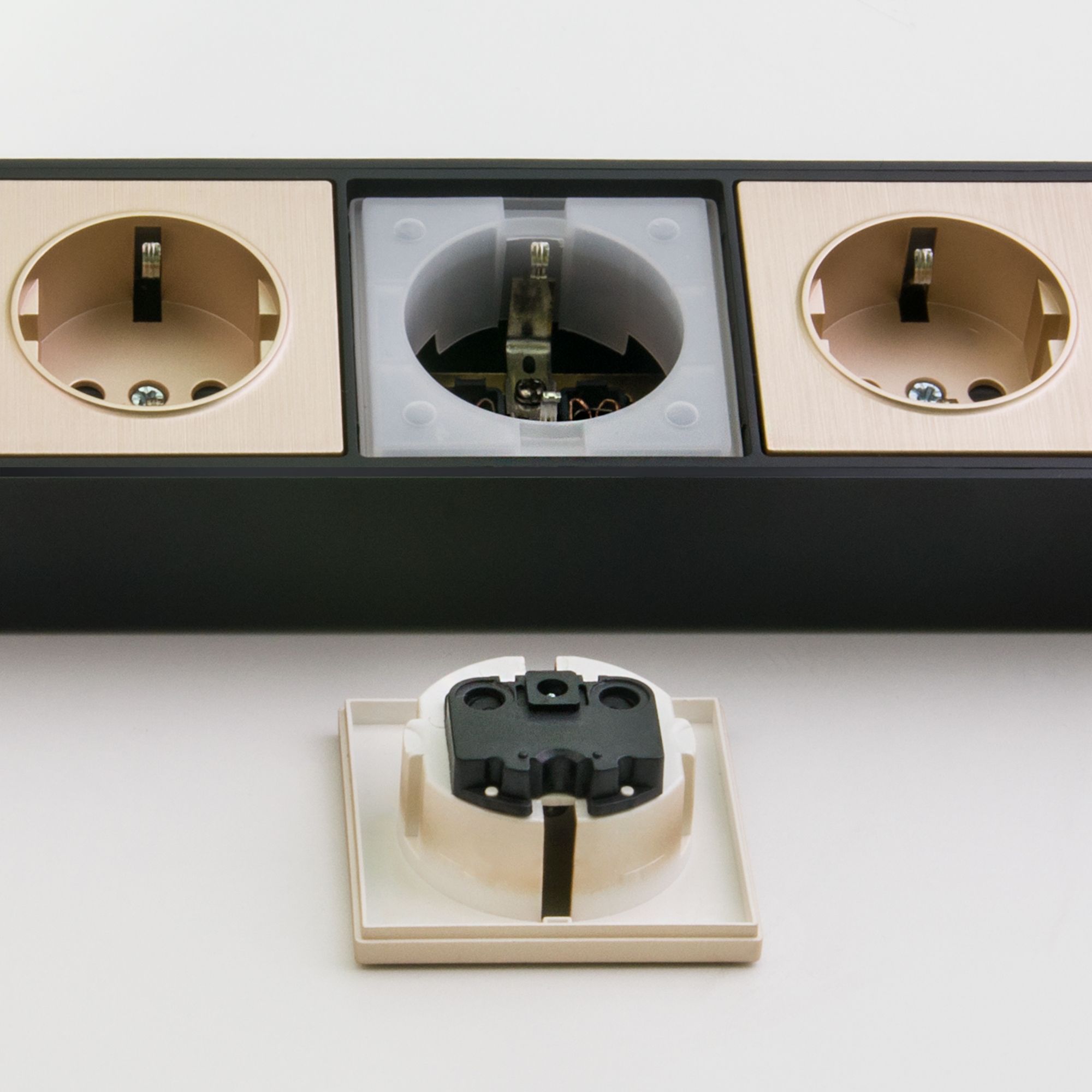 Трехжильный кабель розеточного блока с оптимальным сечением 1,5 мм имеет длину 1,7 м.