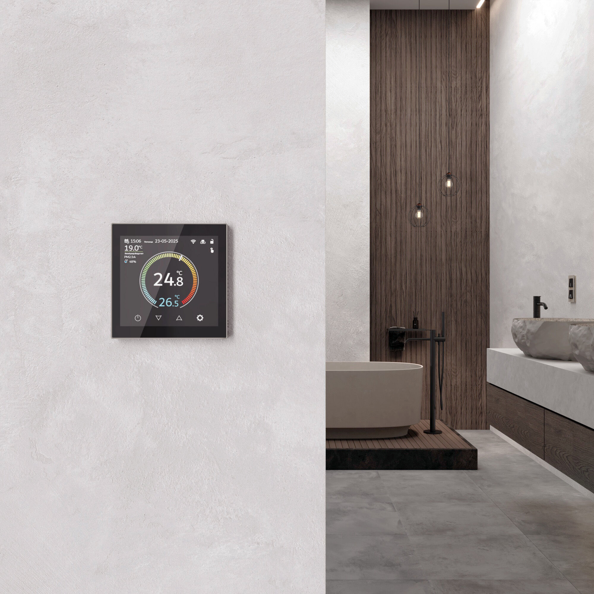 Умный терморегулятор для систем обогрева и тёплого пола сочетает в себе премиальный дизайн, расширенный функционал и удобное управление.