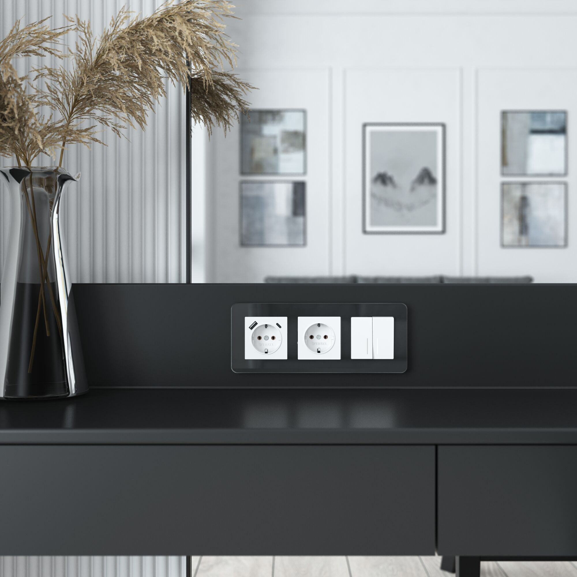 Электроустановочное изделие монтируется в установочную коробку, оставляя видимым только внешнюю лицевую панель и накладную рамку. Механизм для скрытой установки оснащен суппортом из нержавеющей стали, позволяющий крепко зафиксировать изделие в подрозетнике. Надежные контакты из фосфористой бронзы и серебра выдерживают большую нагрузку и обладают большим эксплуатационным ресурсом 40 000 циклов.