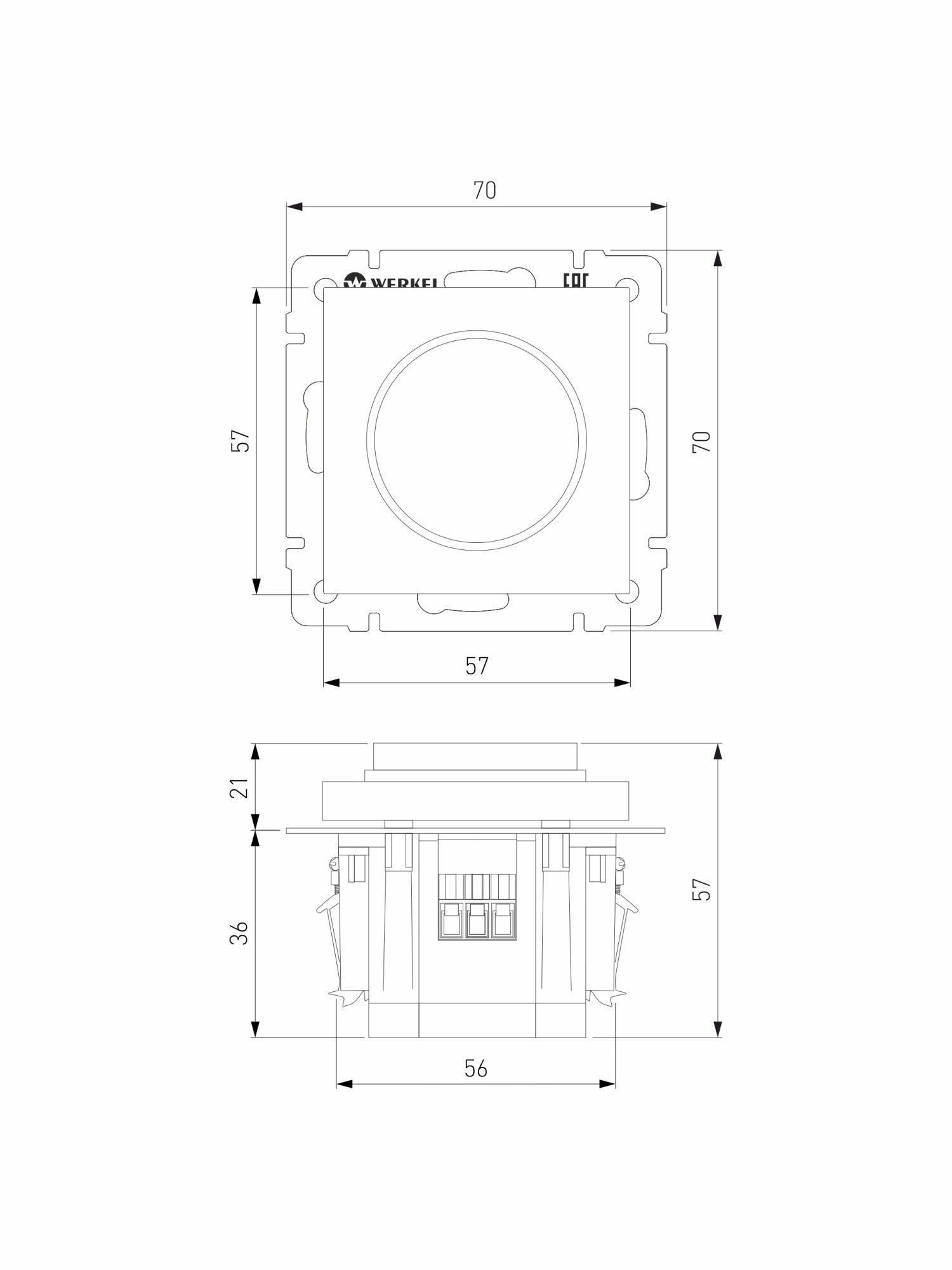 Диммер подключается в разрыв цепи как обычный выключатель или по схеме проходного выключателя. Вы можете заменить обычный или проходной выключатель диммером Werkel, не перекладывая проводку.