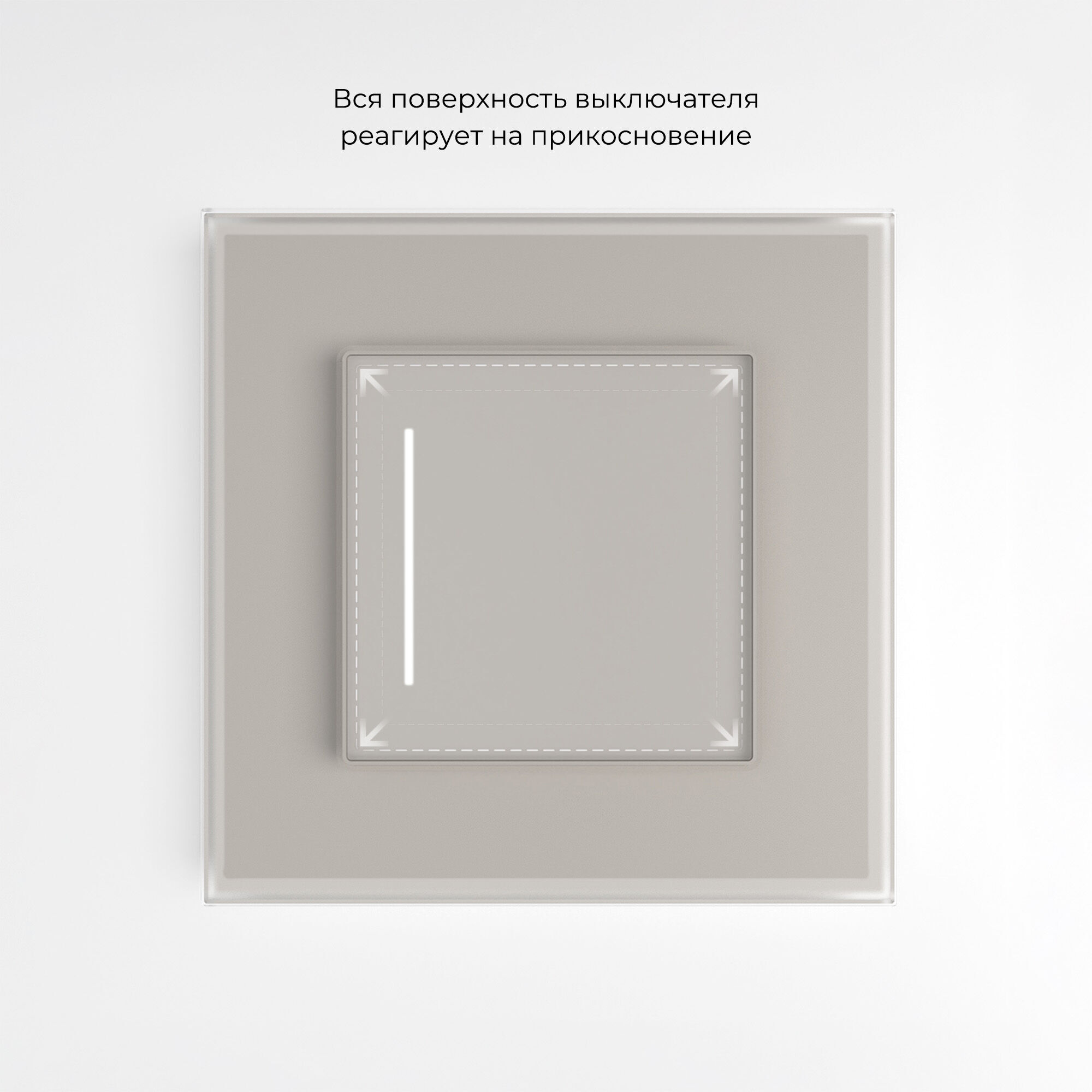 Сенсорный выключатель имеет стеклянную поверхность Soft-touch, которая обладает приятным тактильным эффектом. За счет матового фактурного покрытия лицевая панель не бликует и на ней не остается следов.