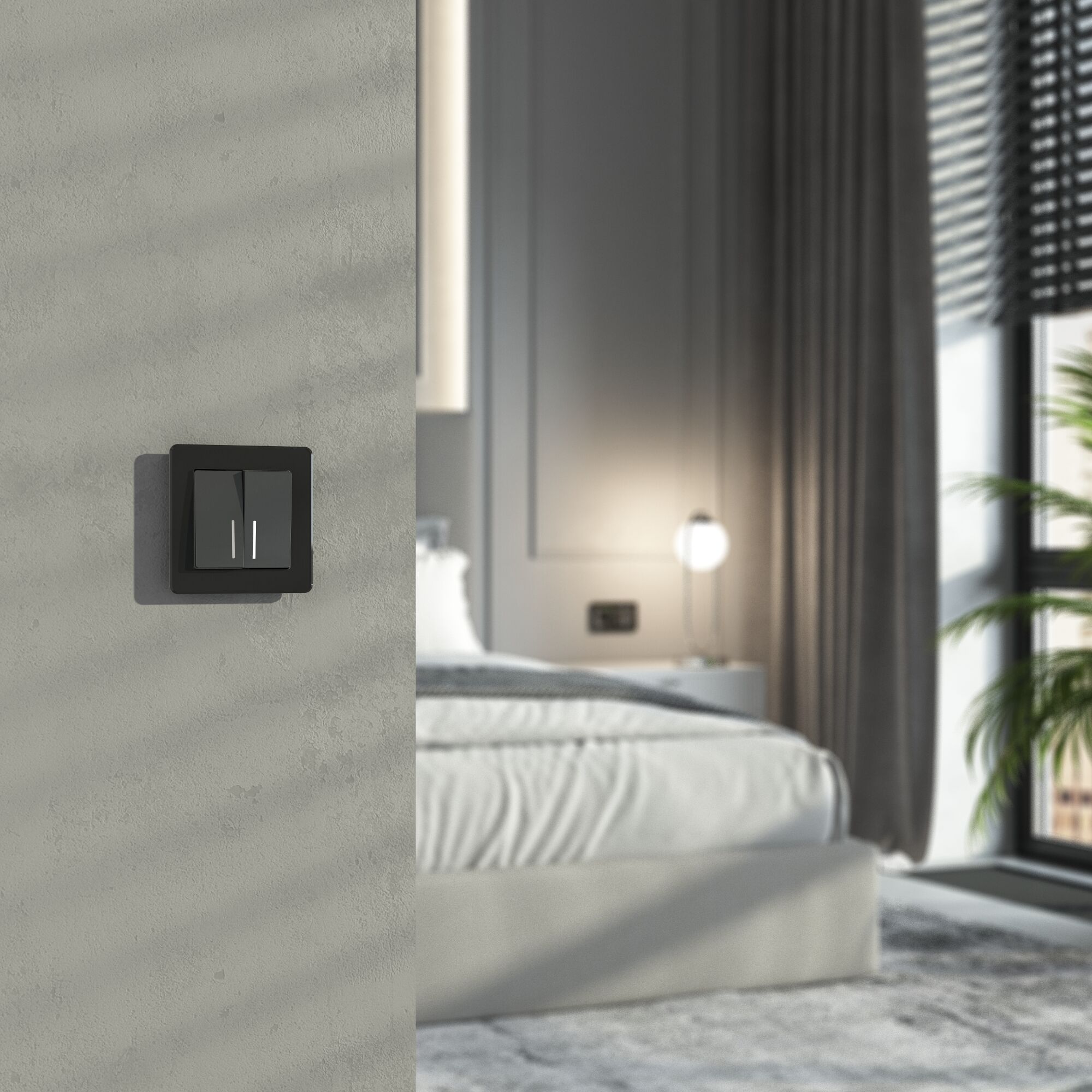 Встраиваемый двухклавишный проходной выключатель в цвете графит акрил с LED подсветкой 10 А 250 В, 50 Гц W1122144 является важнейшим элементом любой домашней электросети, служащим для управления света. Приглушенное свечение светодиодов позволяет легко найти выключатель в темное время суток и помогает ориентироваться в квартире, доме или помещении. Выключатель представляет собой механизм нажимного типа, имеющий металлический суппорт и декоративные накладки.