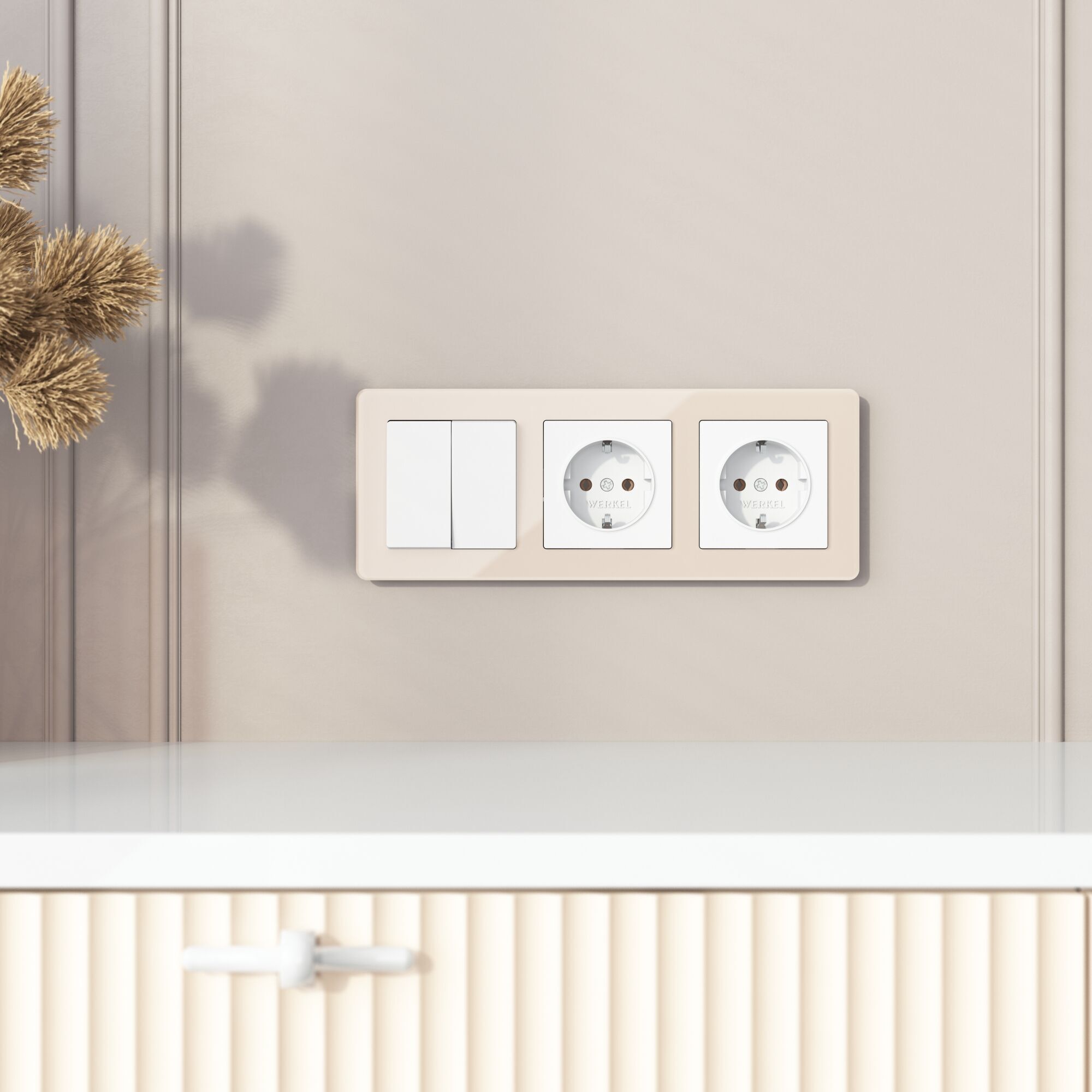 Коллекция представлена в классической цветовой гамме: белый, черный, графит и айвори. Рамки подходят ко всем встраиваемым механизмам Werkel.