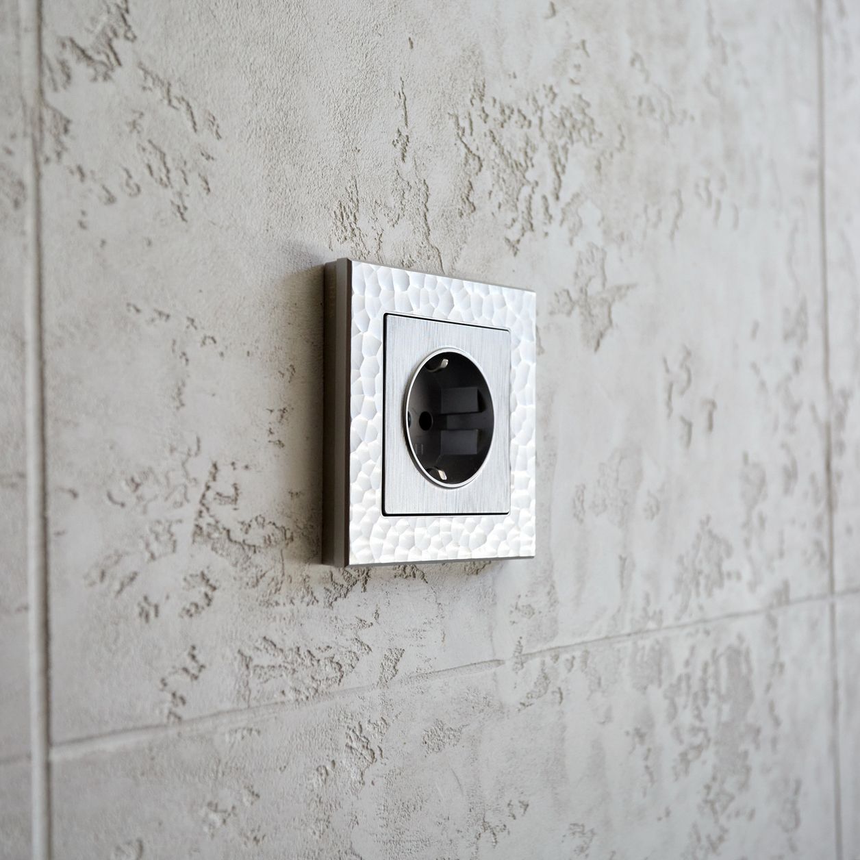 Серия электроустановочных изделий Hammer — это уникальное сочетание природной эстетики и современной функциональности. Её фактура, вдохновлённая естественными текстурами камня, создаёт поразительный визуальный эффект: на первый взгляд она кажется простой и лаконичной, но при ближайшем рассмотрении раскрывается сложной игрой рельефа и оттенков.