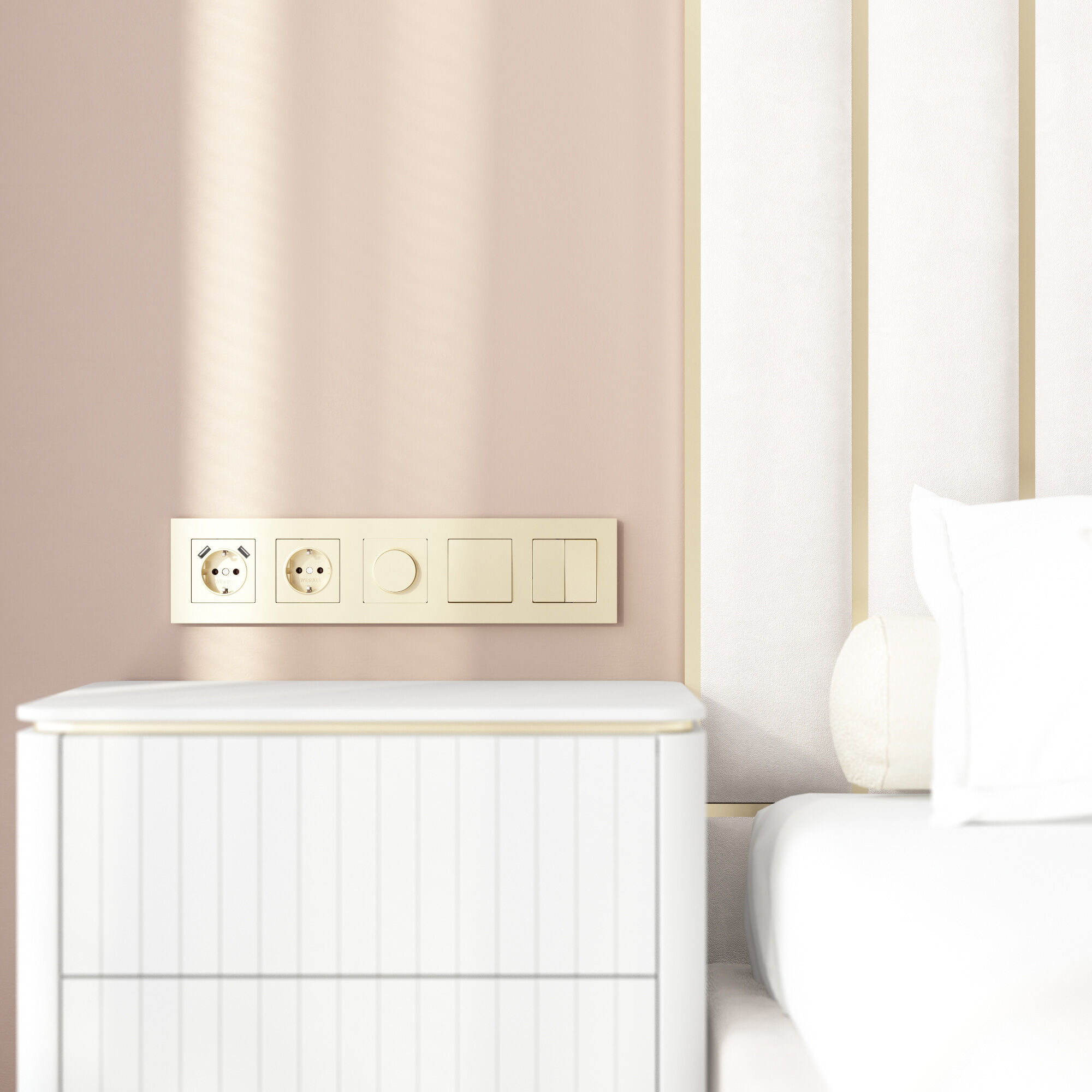 Slab— рамки из поликарбоната в оттенке шампань с металлическим блеском, современное и элегантное решение для вашего интерьера. Благородная фактура с металлическим сиянием приятно считывается и обладает тактильной мягкостью. В любом современном дизайне рамки обозначат себя как важный составной элемент, дополняющий предметы мебели и стилистику помещения. Серия Slab представлена моделями от одного до пяти постов. Рамки предназначены как для горизонтального, так и для вертикального монтажа. Коллекция совместима с любыми встраиваемыми механизмами Werkel. Быстрый и удобный монтаж — еще одно преимущество рамок. С установкой справится даже начинающий электрик, а при желании монтаж можно произвести и самостоятельно: достаточно следовать приложенной инструкции. Рамки изготовлены из негорючего ударопрочного поликарбоната.