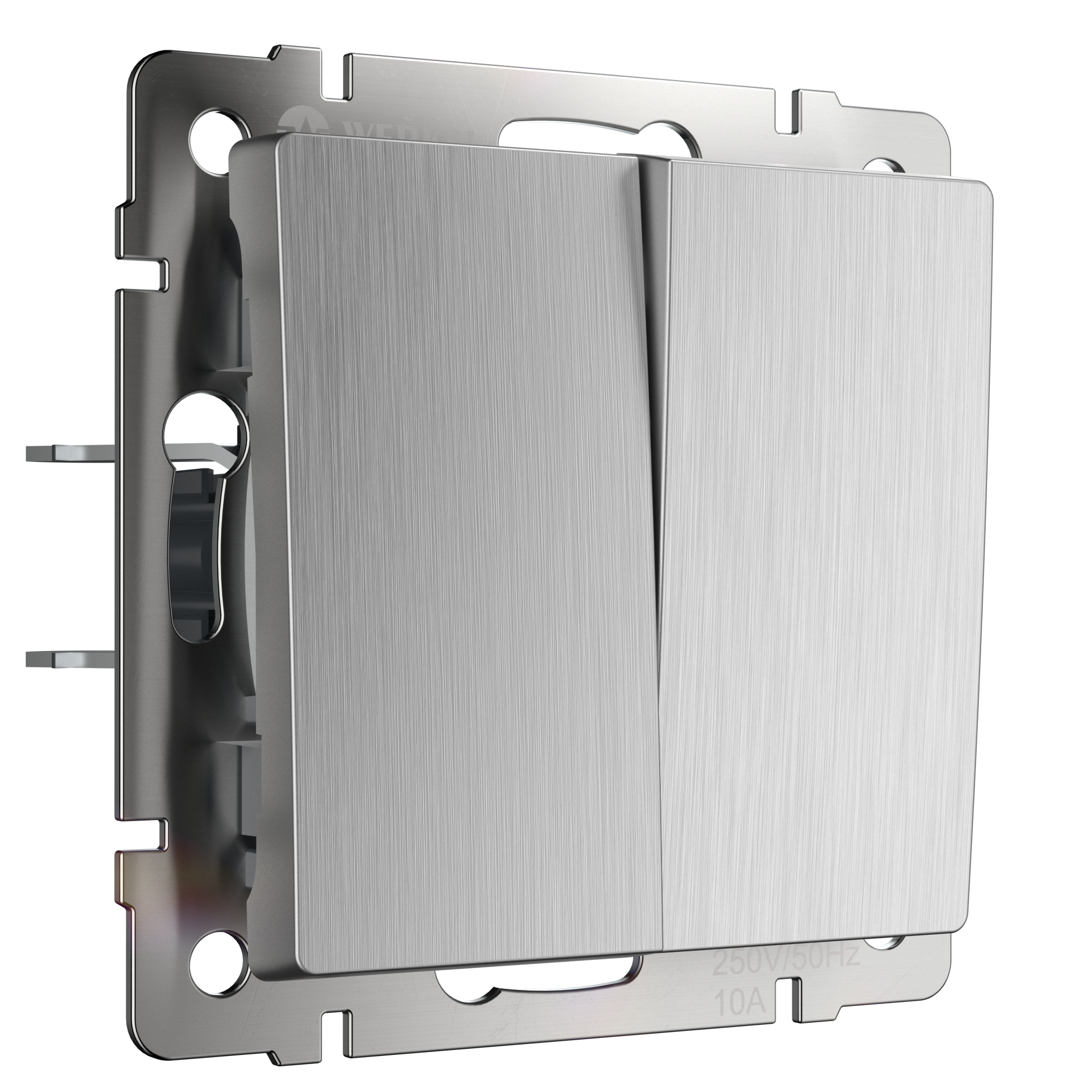 W1120009/ Выключатель двухклавишный (cеребряный рифленый)