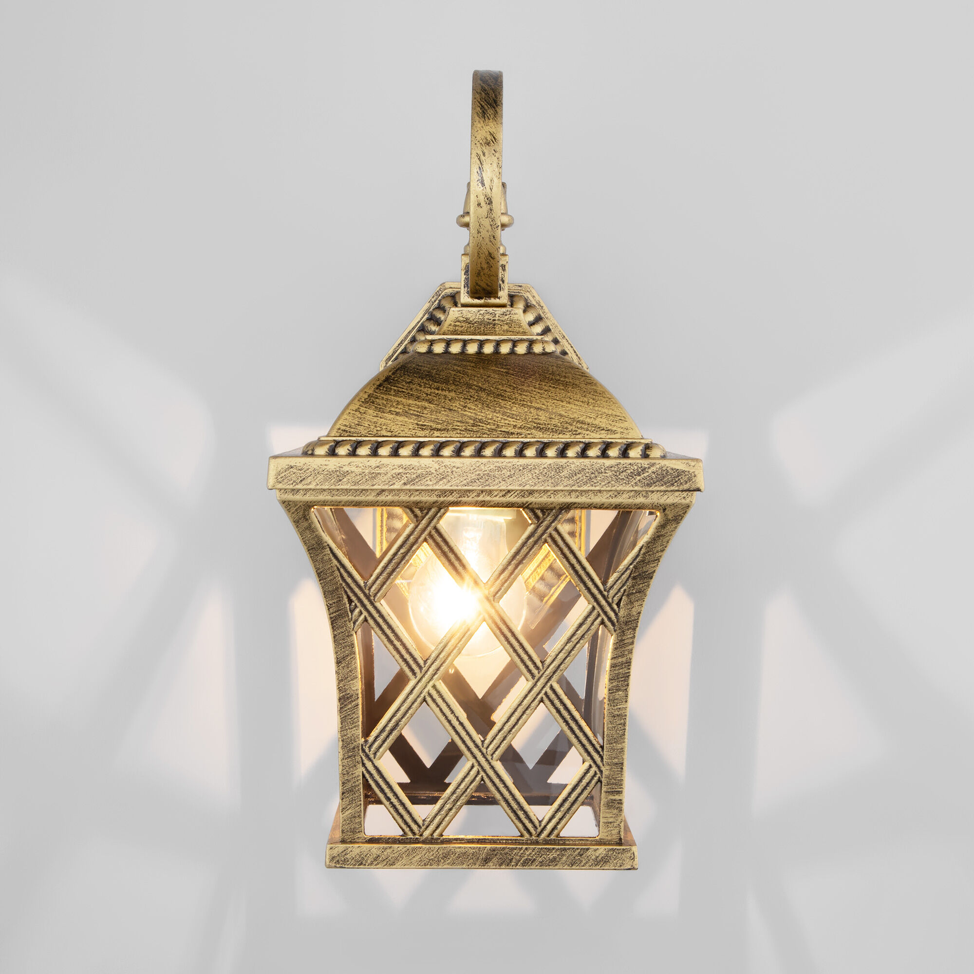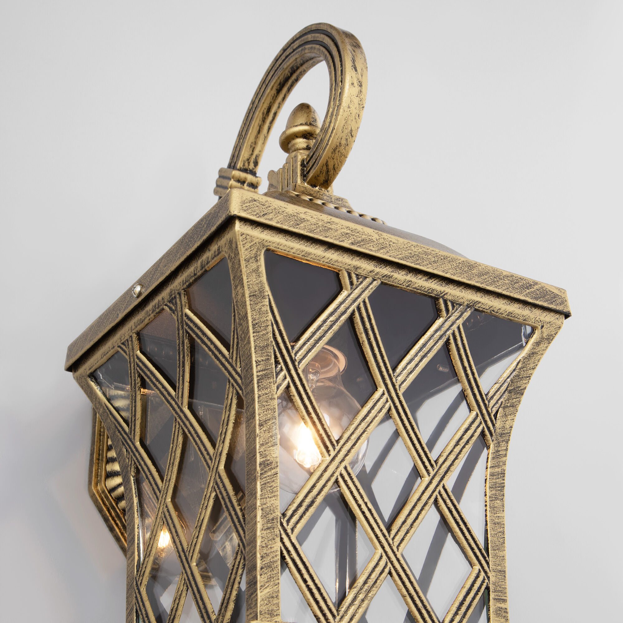 Уличный настенный светильник Cassiopeya D черное золото IP44 предназначен для создания дополнительного освещения, а также декоративной подсветки снаружи и внутри помещений. Благодаря стеклянному плафону создает мягкое равномерное свечение. В качестве источника света используются сменные лампы с цоколем E27. Патрон рассчитан на максимальную мощность ламп накаливания 60 Вт.