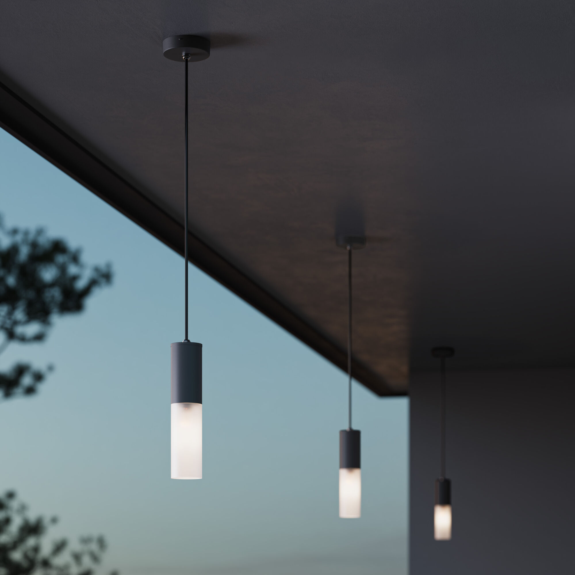 Садово-парковый подвесной светильник Glas 5602 TECHNO серого цвета идеально подойдет для уличного освещения веранд и террас. Сдержанный дизайн цилиндрической модели в стиле техно станет отличным решением для современных экстерьеров.