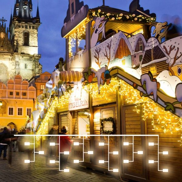 Шаг гирлянды между свисающими нитями 24 мм. Гирлянду можно соединять между собой, что позволяет нарастить гирлянду в длину. Степень защиты прибора (IP) - 65, где первая цифра обозначает пылезащиту, а вторая - влагозащиту. Чем выше числа, тем больше степень защиты гирлянды по данным показателям. Гирляндой данного вида можно украсить новогоднюю елку, окно, стену, зеркало и многие другие предметы внутри помещения, а также использовать для украшения дома снаружи.