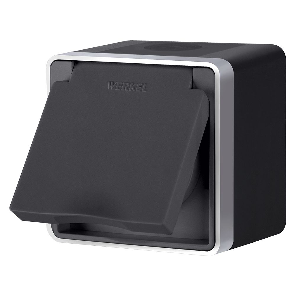 W5071234/ Розетка влагозащ. с зазем. с защит. крышкой и шторками Gallant (черный с серебром)