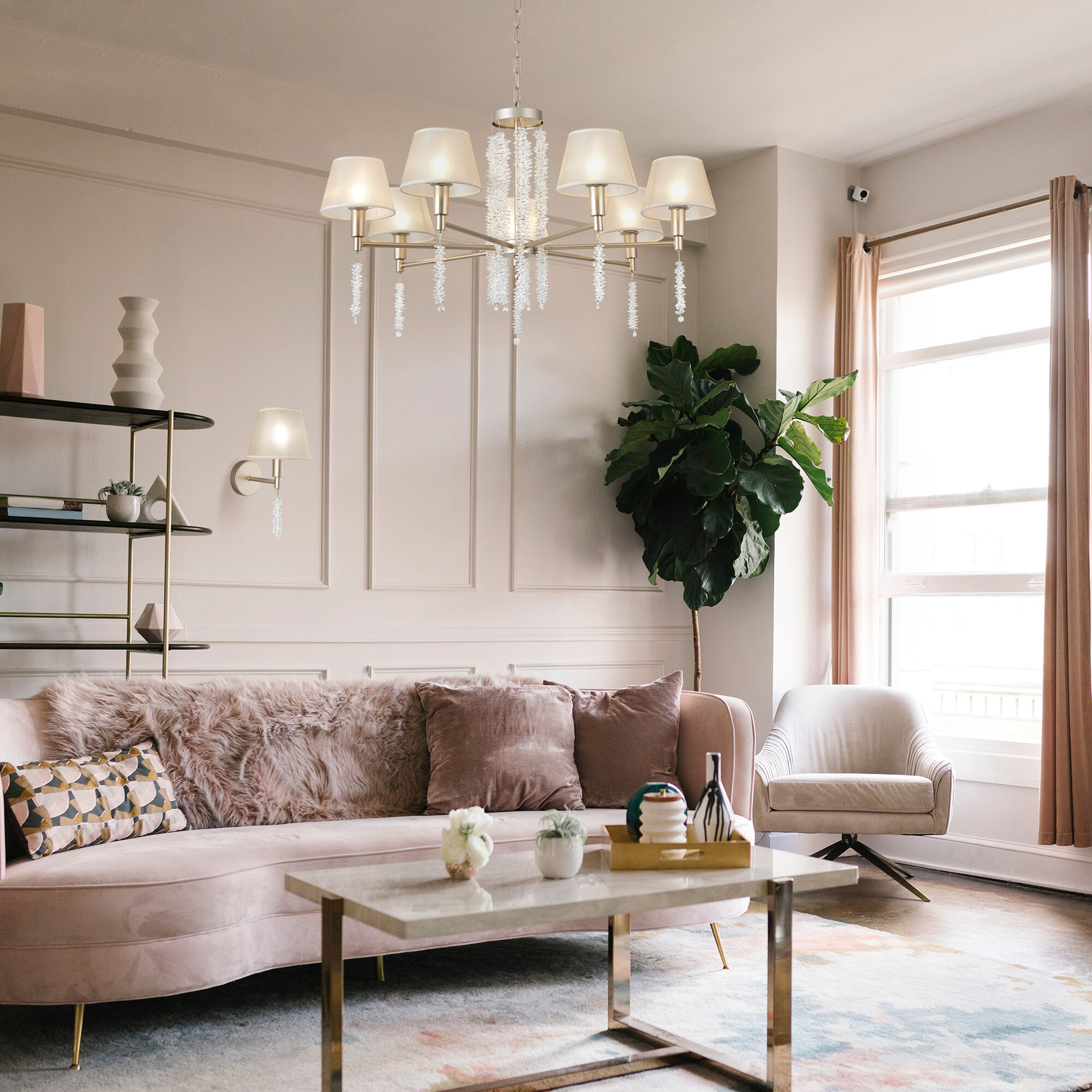 В люстре рекомендуется использовать сменные лампы накаливания с цоколем Е14 с максимальной мощностью 40 Вт. В производстве люстры использовали высококачественный металл с надежным защитным покрытием и закаленное стекло.
