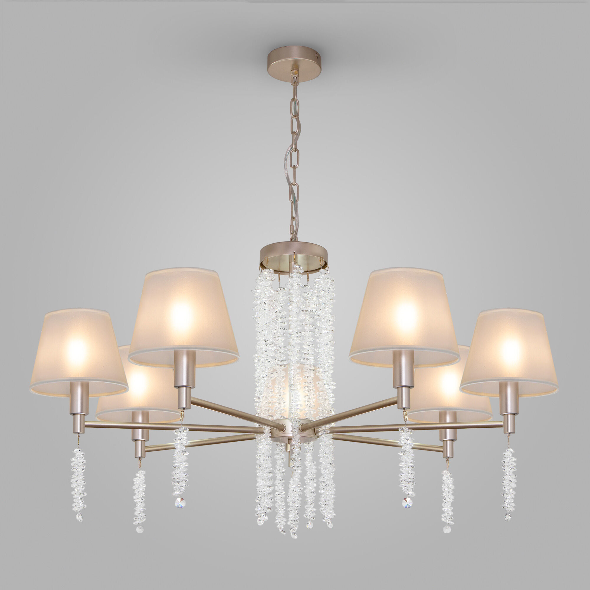 ПодробнееСоздать качественное освещение вам поможет классическая подвесная люстра с тканевыми абажурами. Простые минималистичные формы и сдержанные тона станут идеальным дополнением для вашего интерьера. Люстра украсит потолок вашей спальни и создаст полноценное освещение на площадь 13 м².